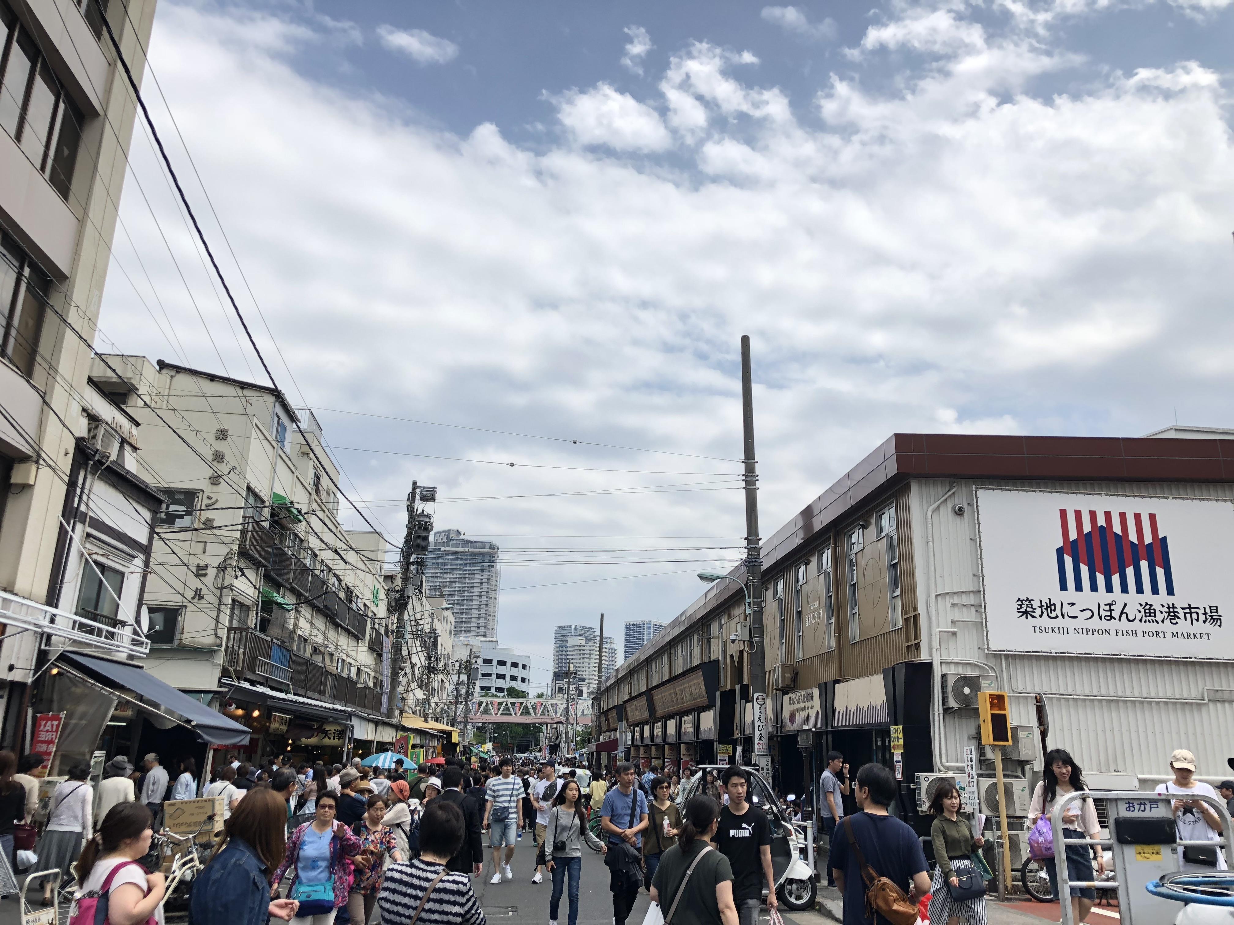 帰り道には、築地でおいしいお昼ご飯を堪能し、お土産を両手に帰路につきました。