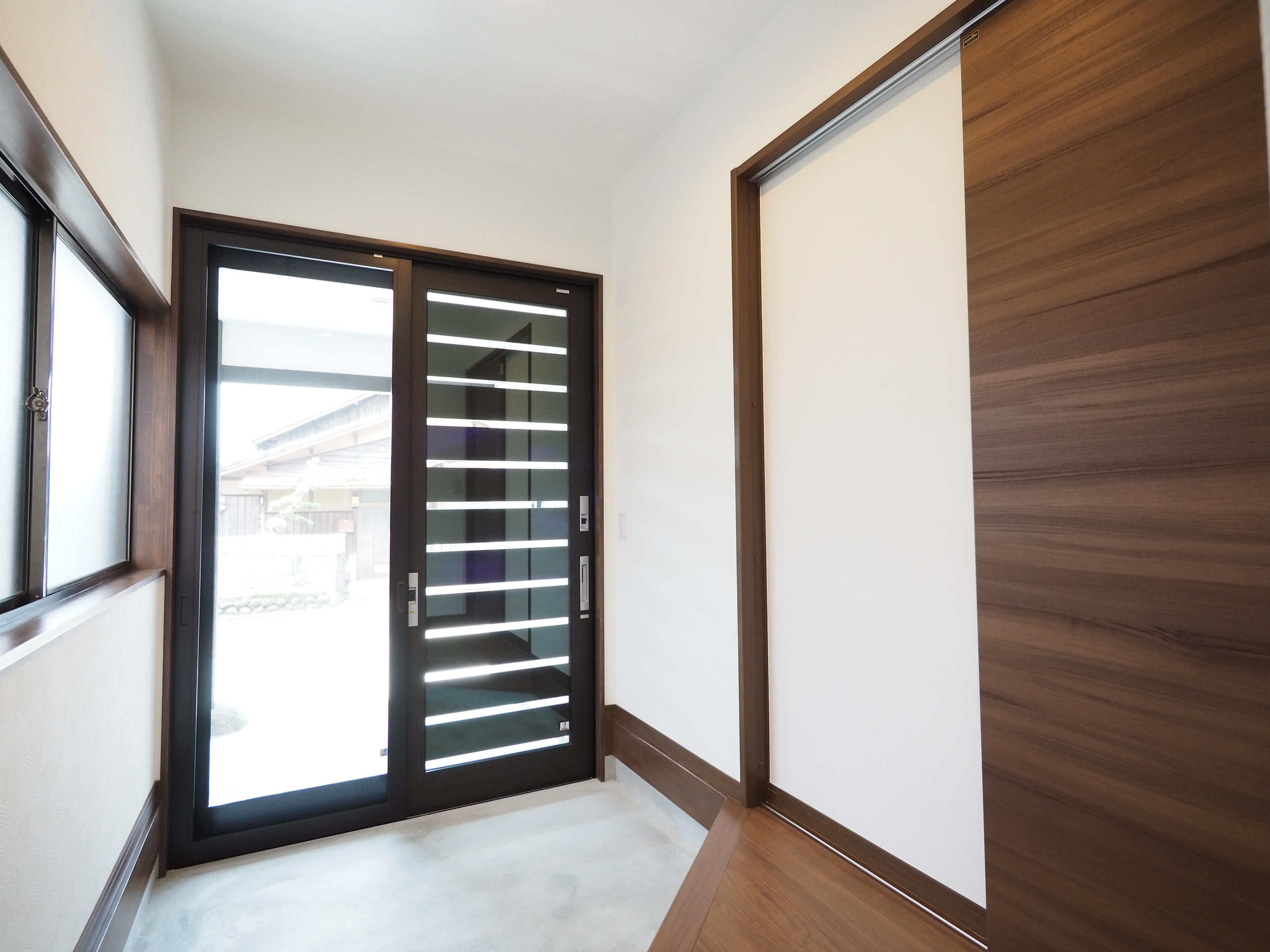 築約35年の暗い印象だった玄関が、光を取り込む和風モダンな玄関となりました。