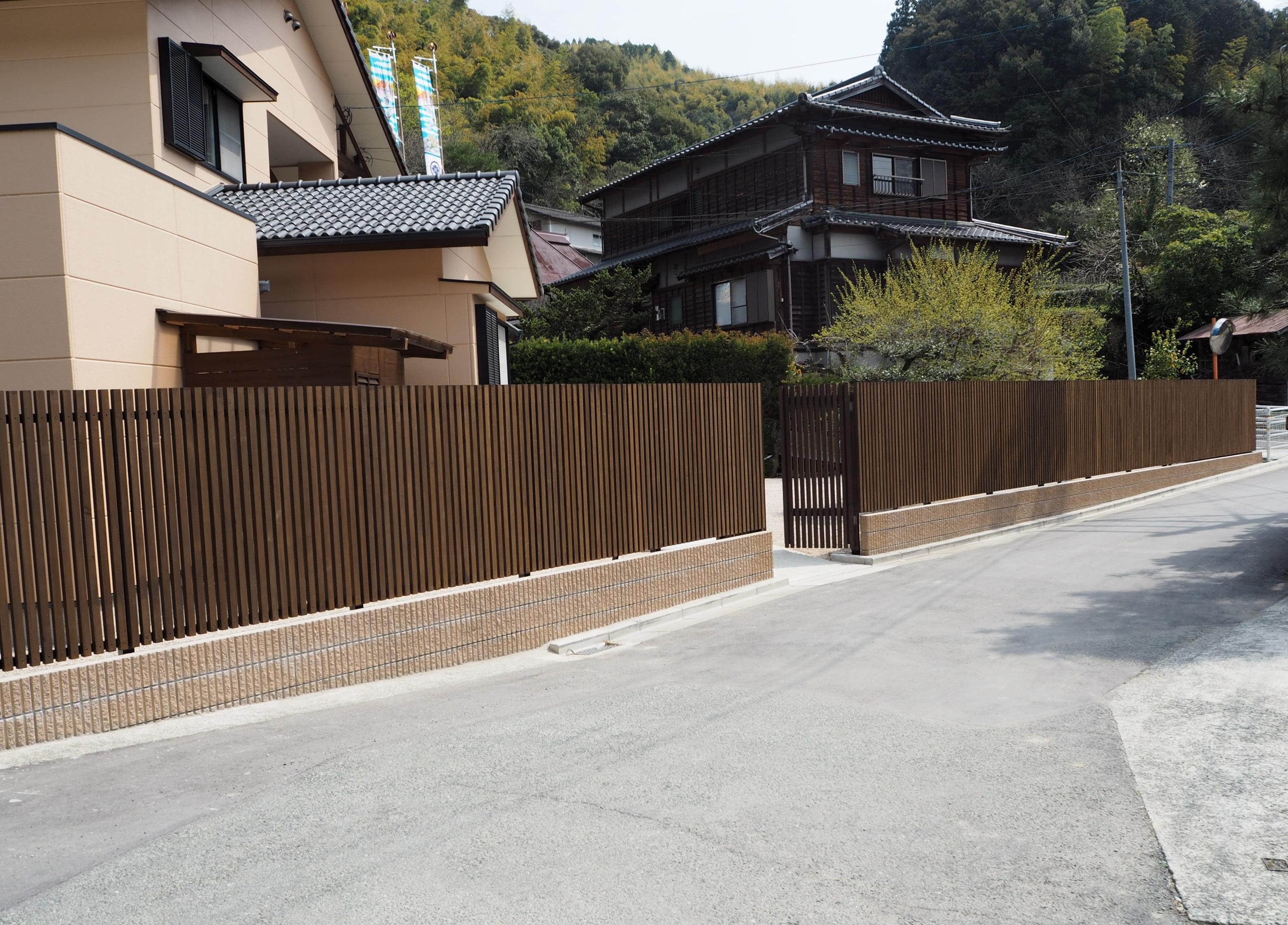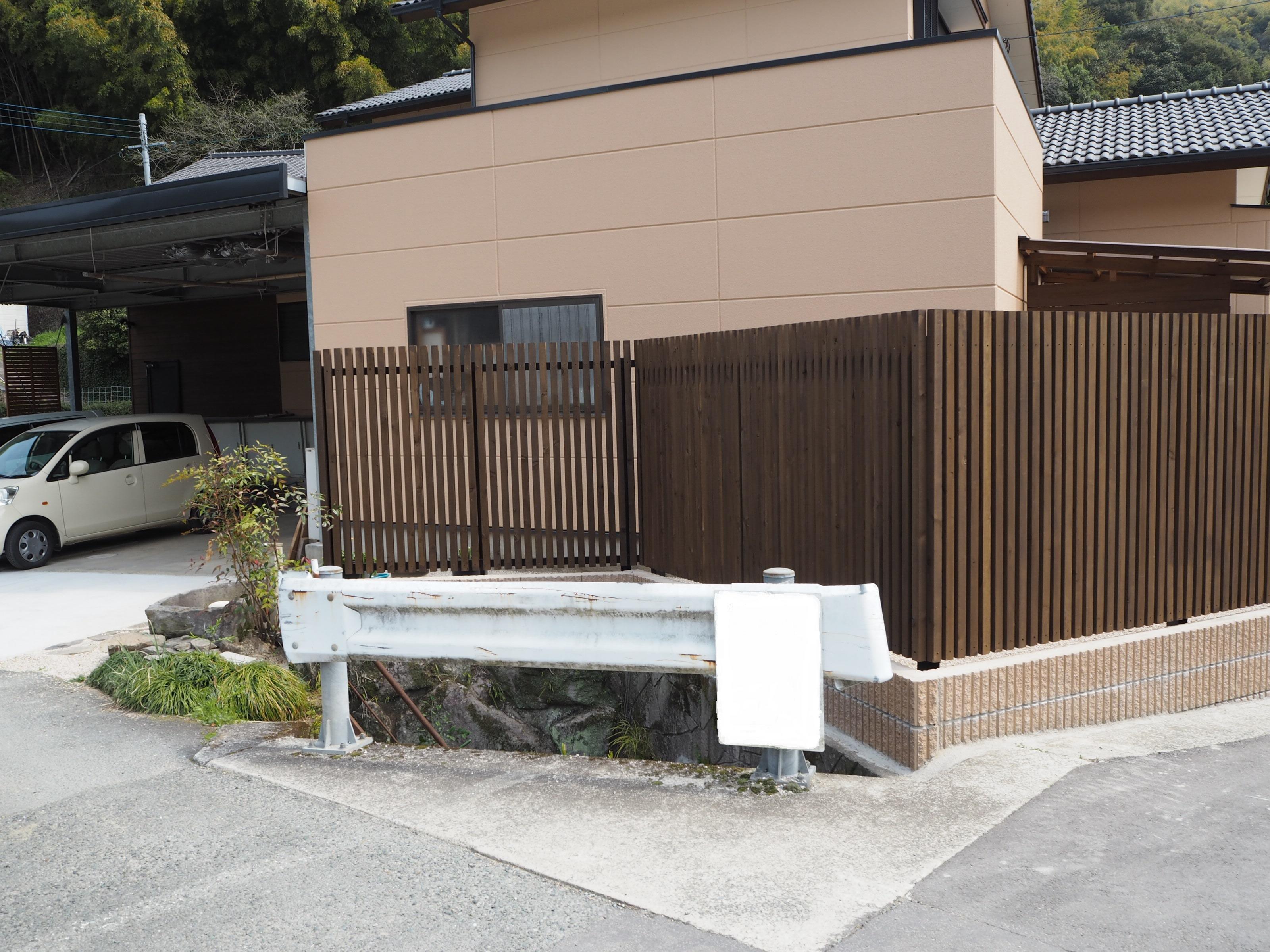 道路から住宅への目線を遮るためにフェンスを建てたい、との事でフェンス工事のご依頼をいただきました。圧迫感を感じさせないように、と温かみがありナチュラルな雰囲気となる木製フェンスを選ばれ、風が抜けるようにすき間を等間隔開けるなど、こだわりの木製フェンスです。