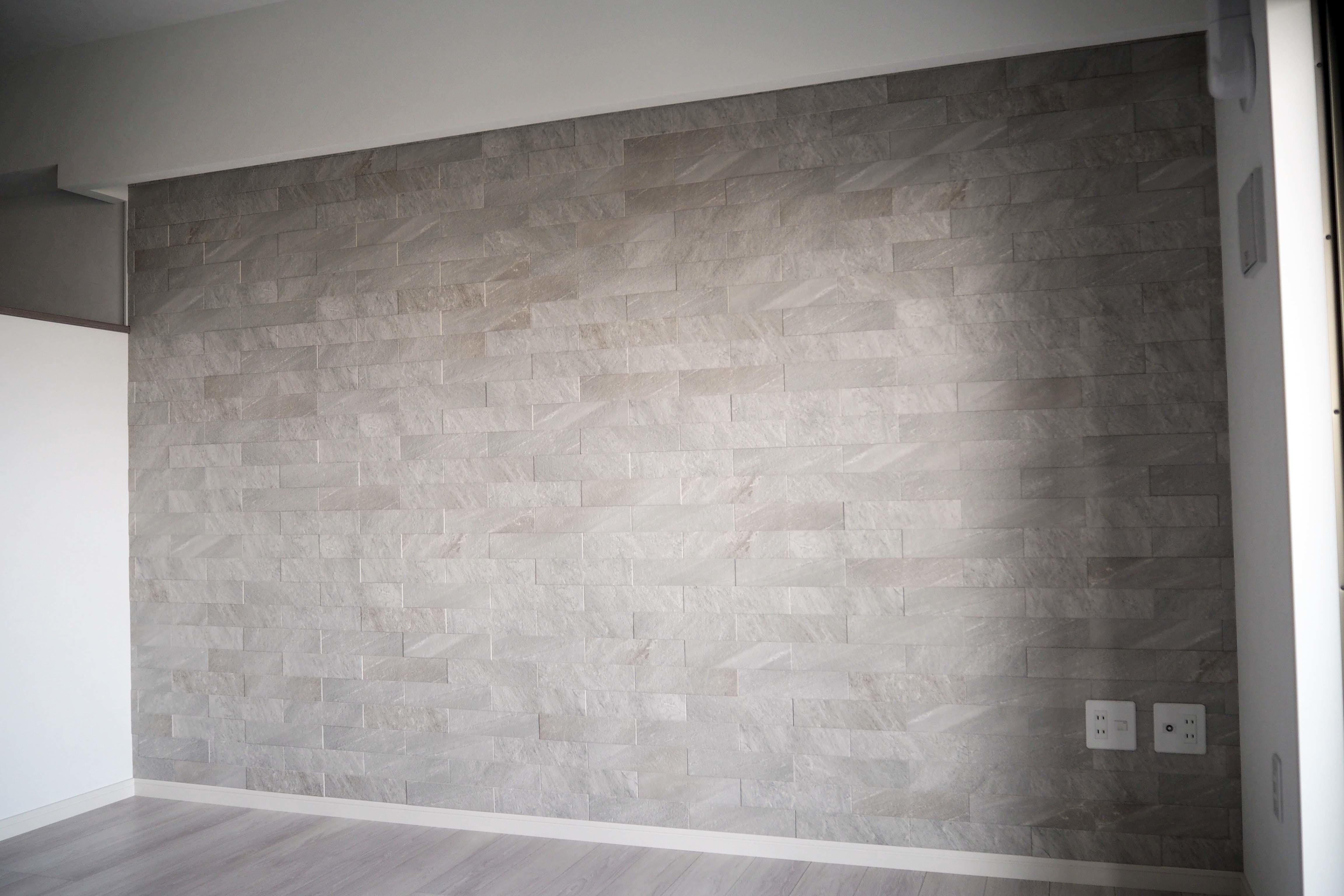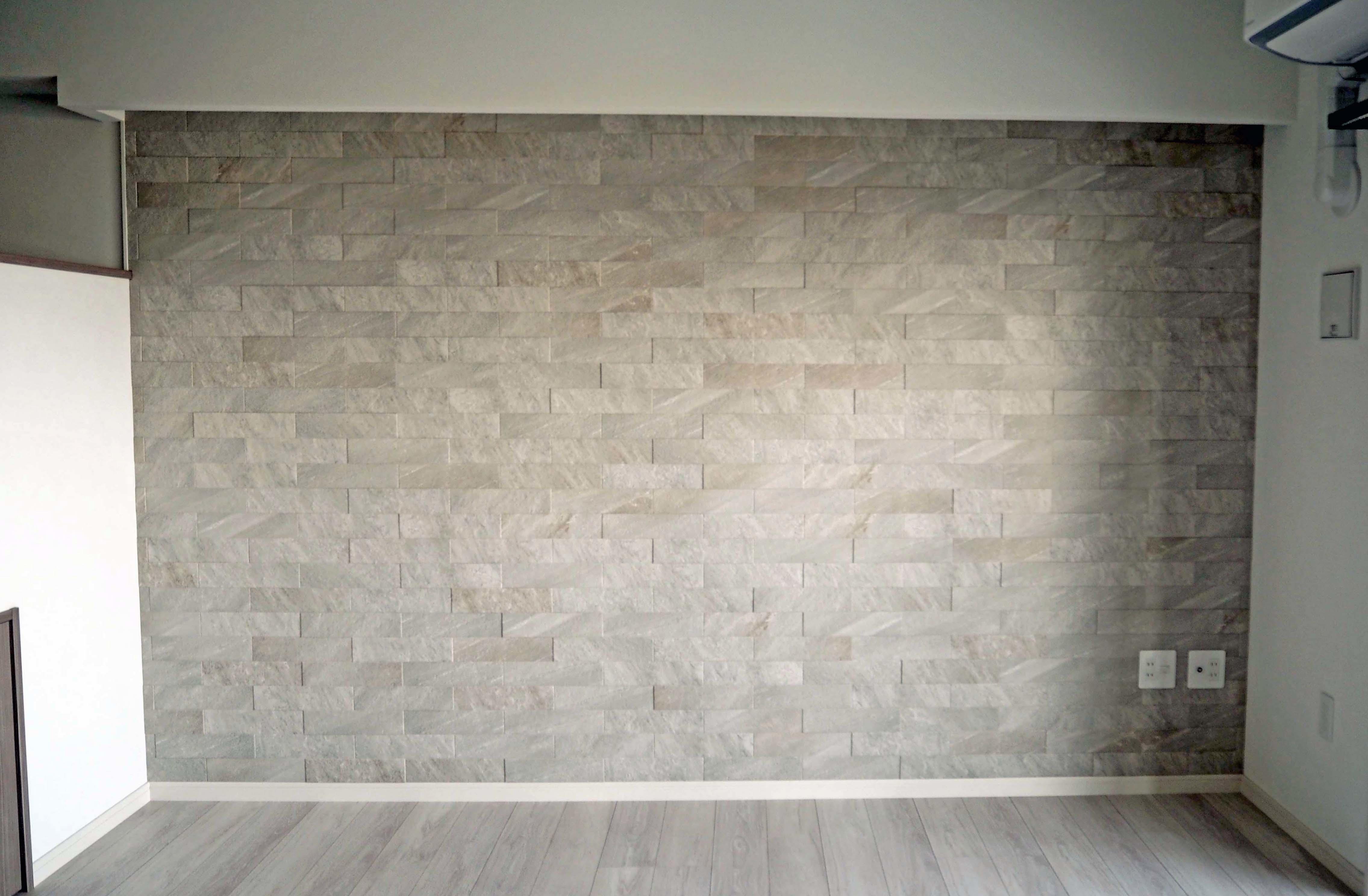 弊社のHPを閲覧いただき、ご来店。新築のマンションのリビングにエコカラットを使いたいとご相談をいただきました。LIXILエコカラットプラス“ラフクォーツ”をリビングの壁一面に施工させていただきました。リビングの雰囲気や色合いをサンプルにてご確認いただきながら選んでいただきました。ラフクォーツは自然な素材でそれぞれの色が繊細に違います。お客様も色に迷われてましたが、工事中眺めながらこの色にしてよかったと喜んでありました。