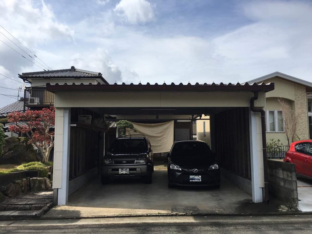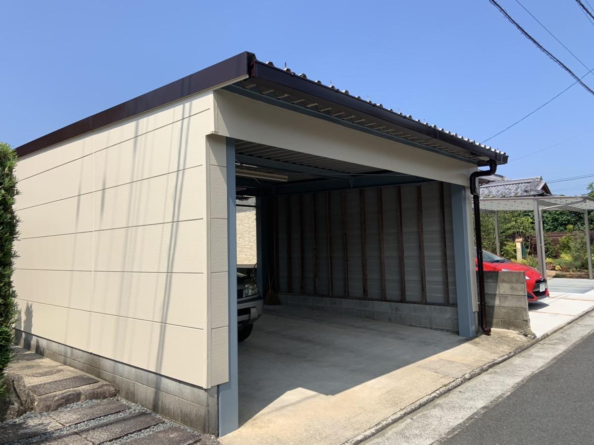 OBのお客様より車庫塗装工事のご依頼を頂きました。汚れや劣化した部分をまずは高圧洗浄、鉄部の錆などを落とすケレン作業をし塗装がのる下地を整える作業をします。塗装色は、同じ色合いでしたが青空にパッと映え、新設したように生まれ変わりました。