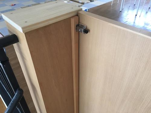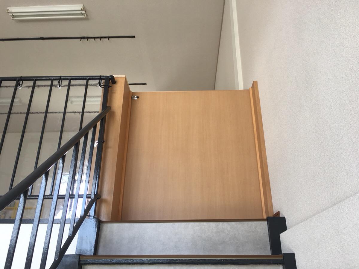2階で学習教室を開くことになり、子供さんが安心して通えるようにと階段に鍵付きの扉を付けました。鍵は扉の外側についているので、子供が開閉できずに安心です。
