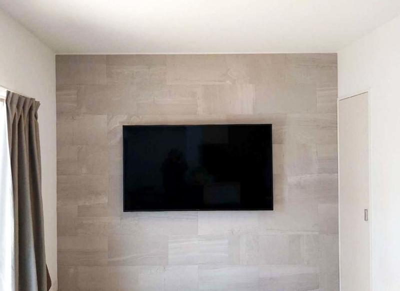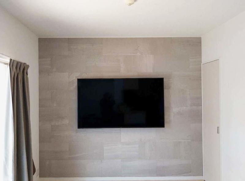 マンション購入後にご相談を頂き、リビングの壁にエ コカラットを施工させて頂きました。 落ち着いた色合いでモダンな空間に仕上がりました。 テレビを壁掛けにされ、広々快適な空間になりました。