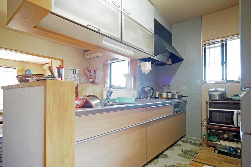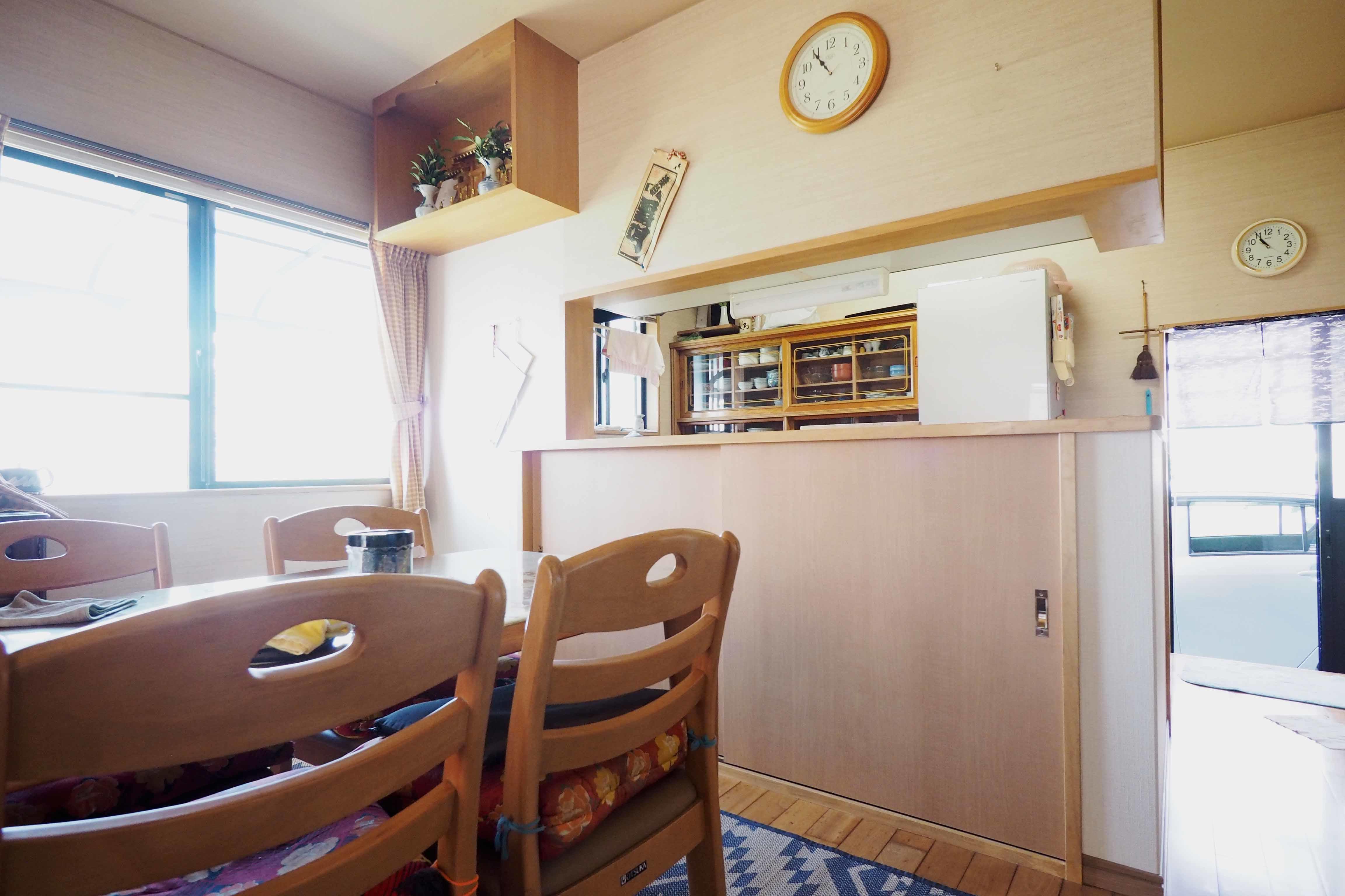 既存のキッチンより5cm低いものに取替、カウンターは10cm低く作りかえました。カウンター裏の収納も開き戸を引き戸に交換しました。ダイニングテーブルへの干渉も心配することなく、スムーズに開閉していただけます。