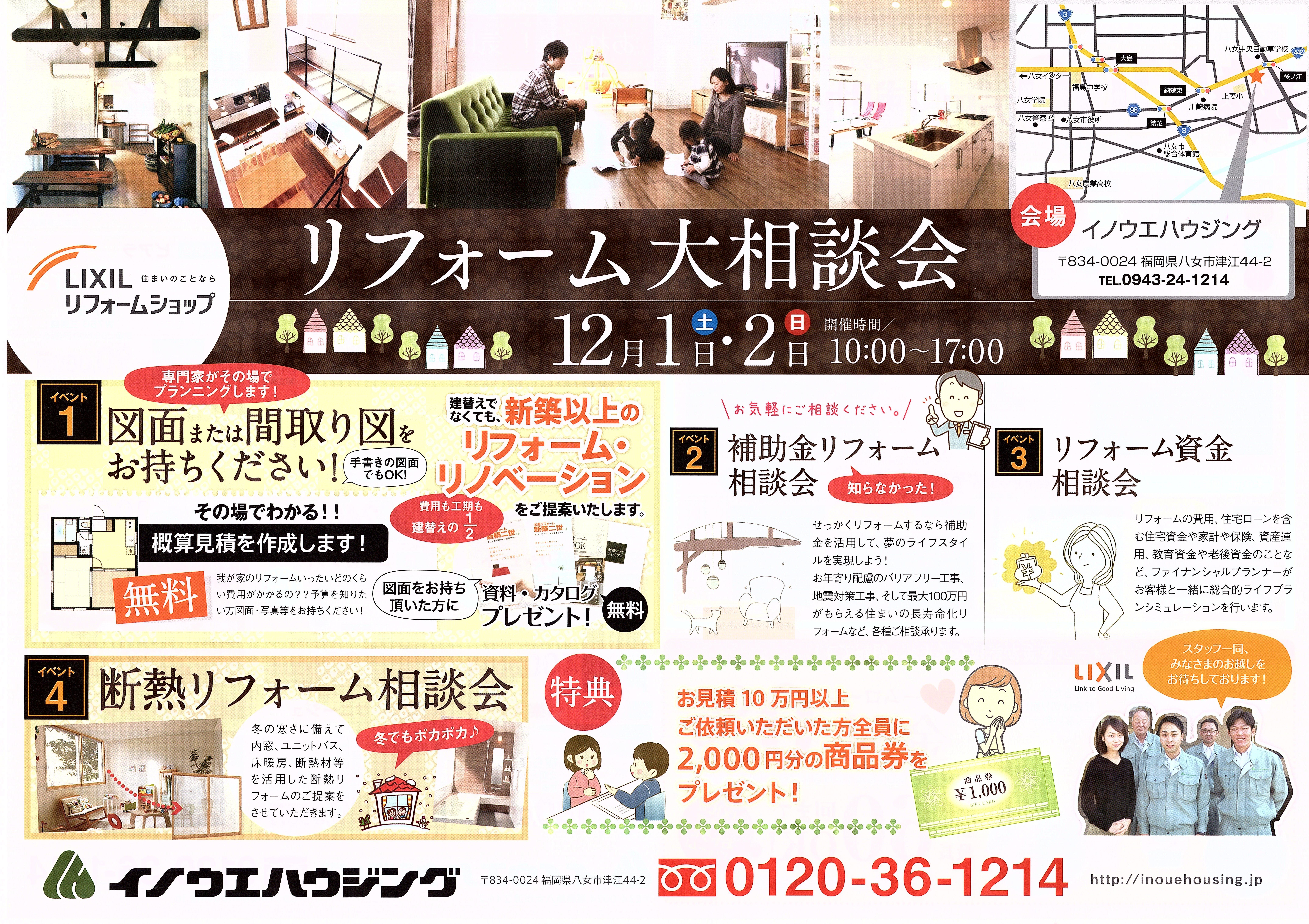 イノウエハウジング八女本社にてリフォーム相談会を実施いたします。
