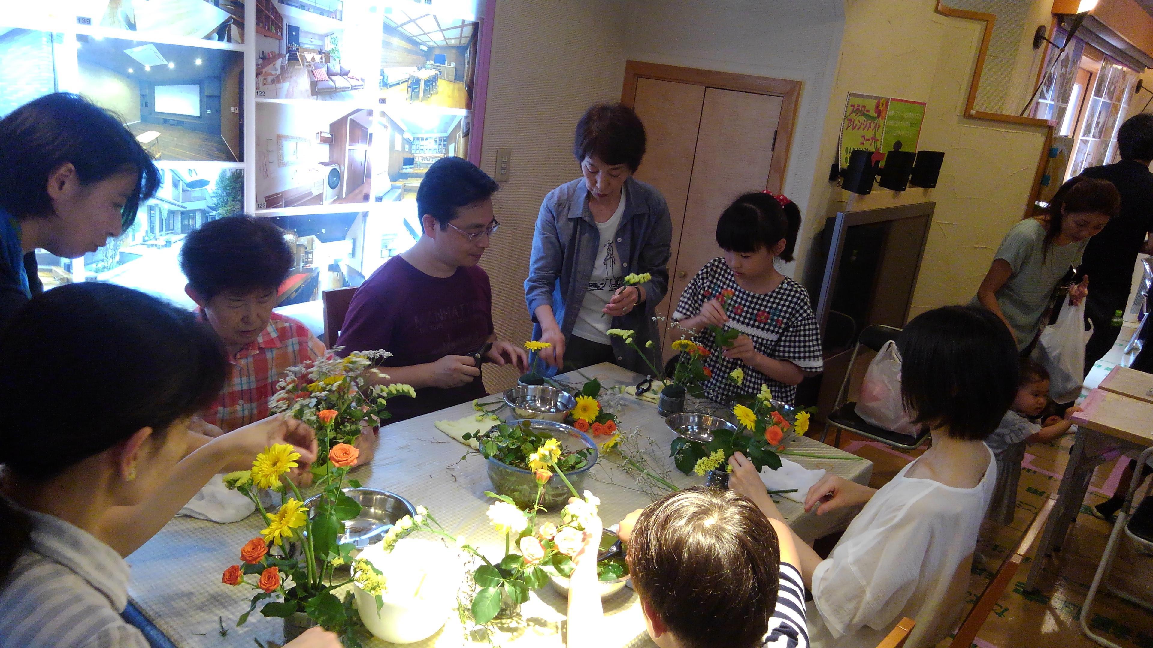 お花の先生は毎週ハウステックスで生徒さん達を教えている草月流の先生です!