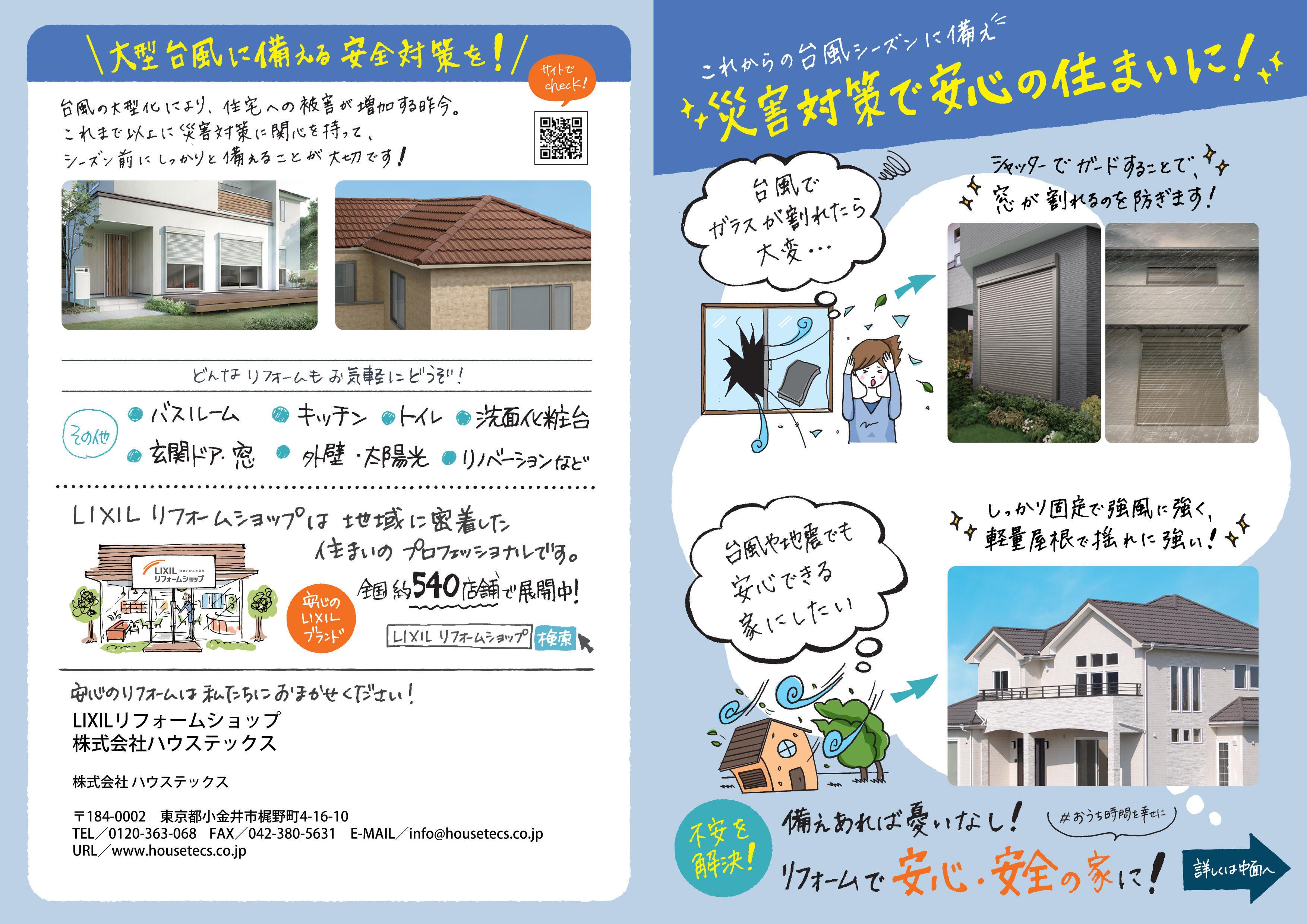 窓には「リフォームシャッター」を設置して、台風時の不安を解決できます。