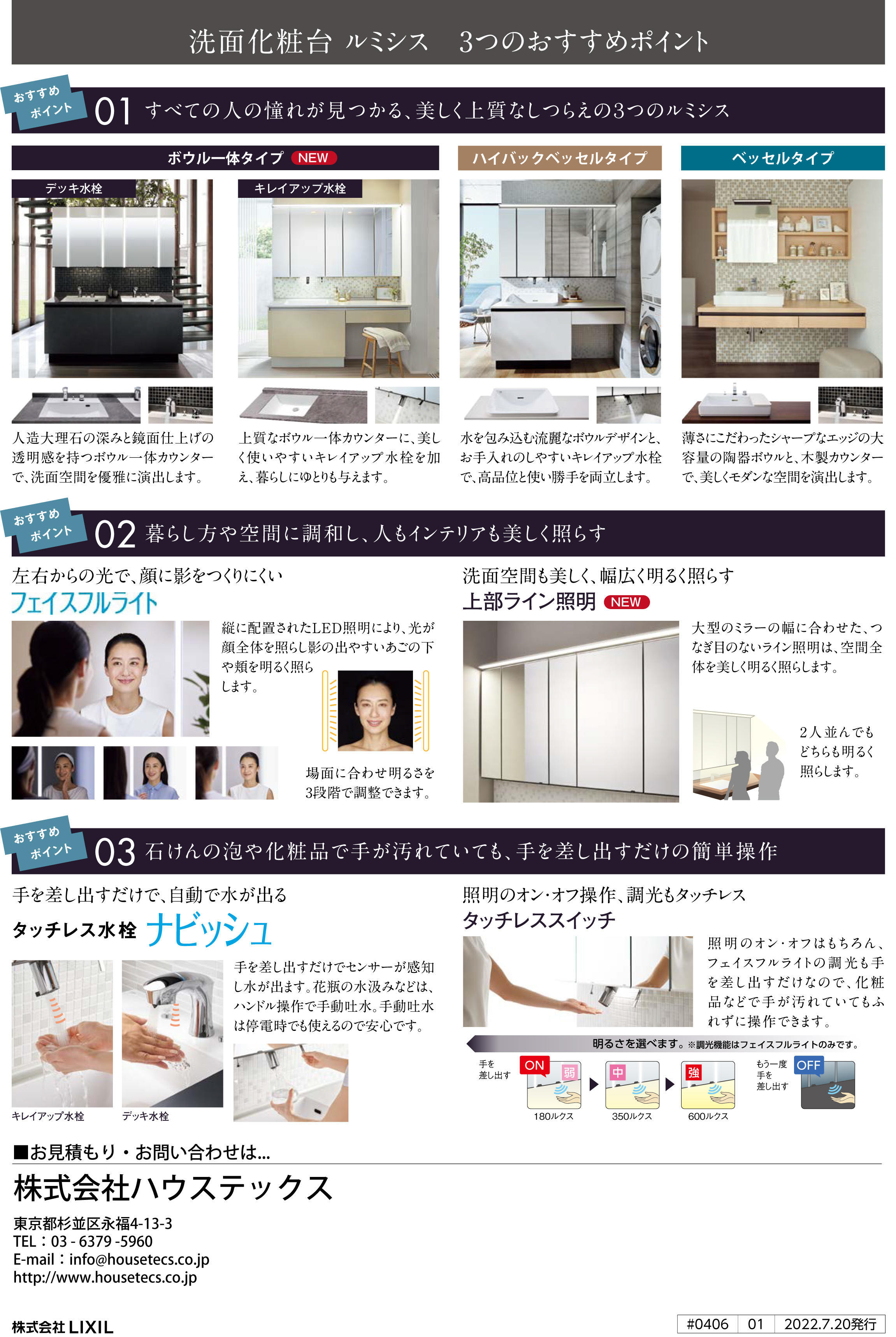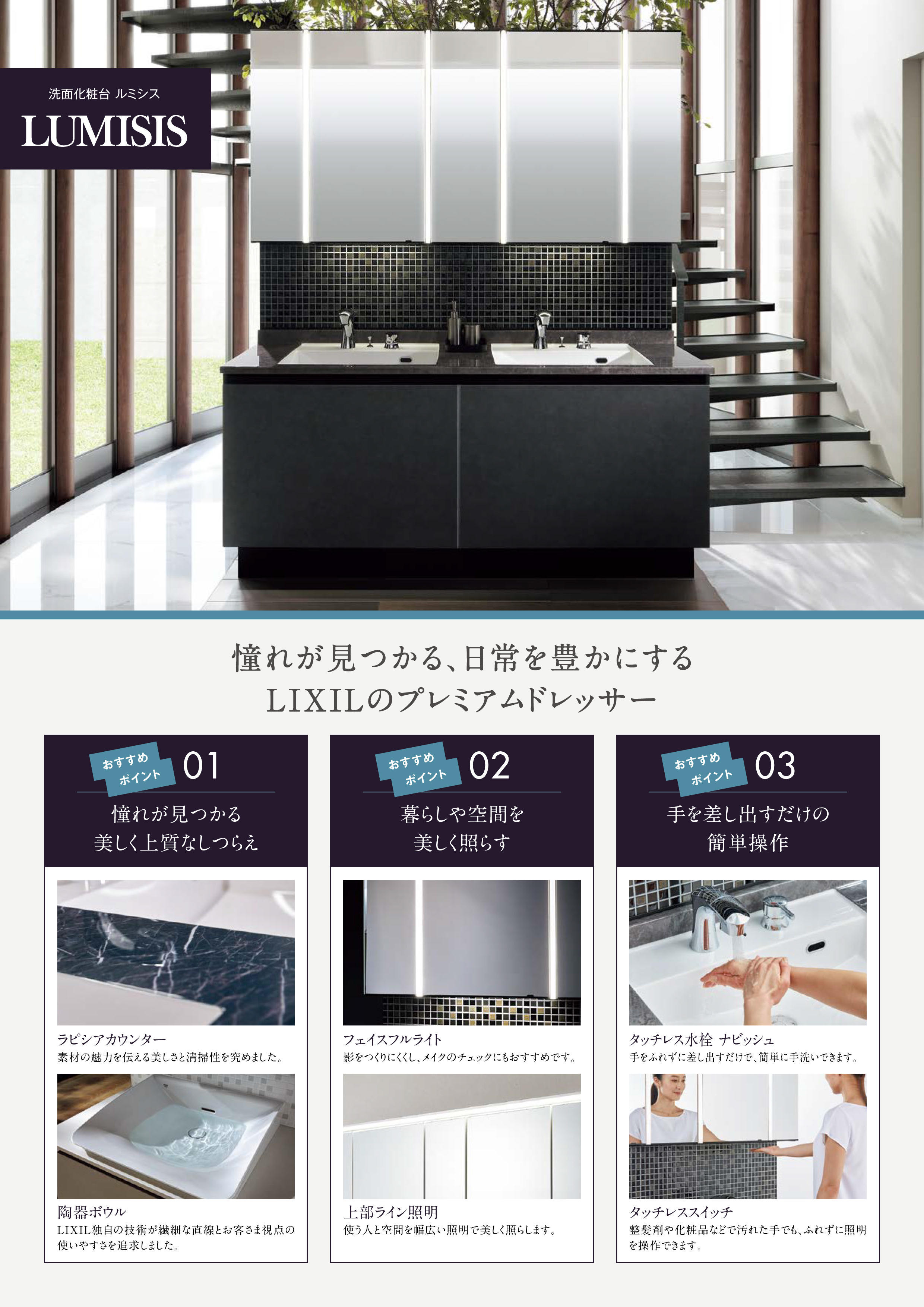 2022年6月から販売されている、ボウル一体型の洗面化粧台「ルミシス」。