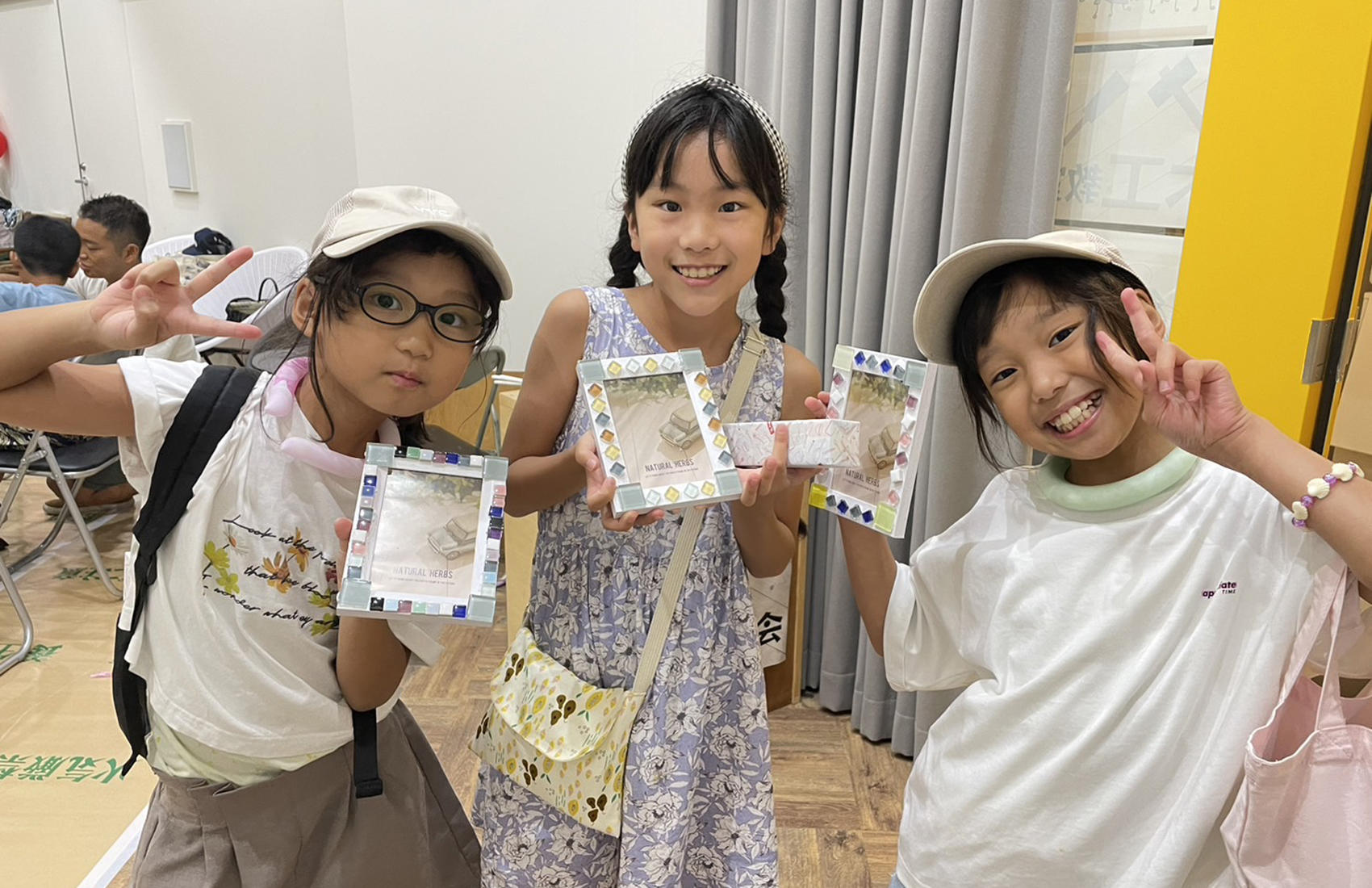 くらもとワークショップではタイルを貼ってオリジナルのフォトフレームを作成。