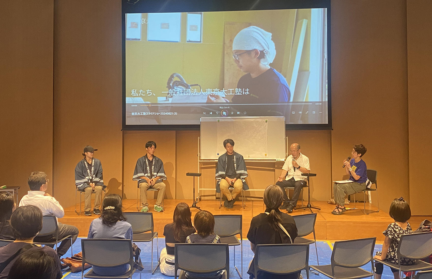 また、木工チャレンジ10周年を振り返る講演の中で、ハウステックスの社員大工と社長が大工の仕事や木工チャレンジについてお話をさせていただきました。