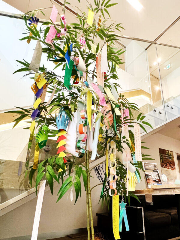 ご来店いただいた方々に、思い思いの願い事を書いた短冊を、エントランスにある笹に飾り付けて頂きました。