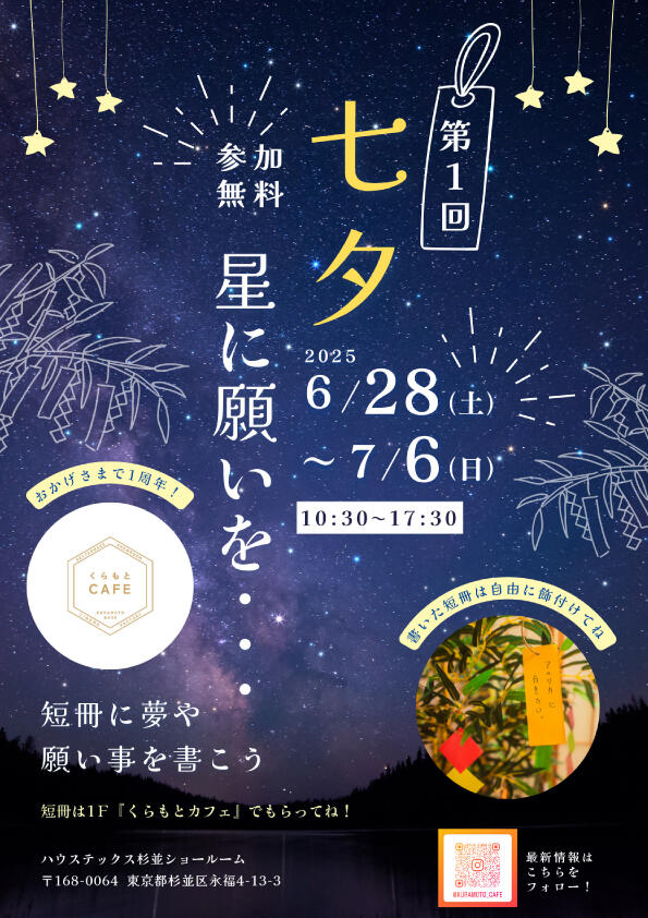 一覧へ戻るくらもとカフェ1周年記念の中で「七夕まつり」が6/28~7/6の期間、開催されました。