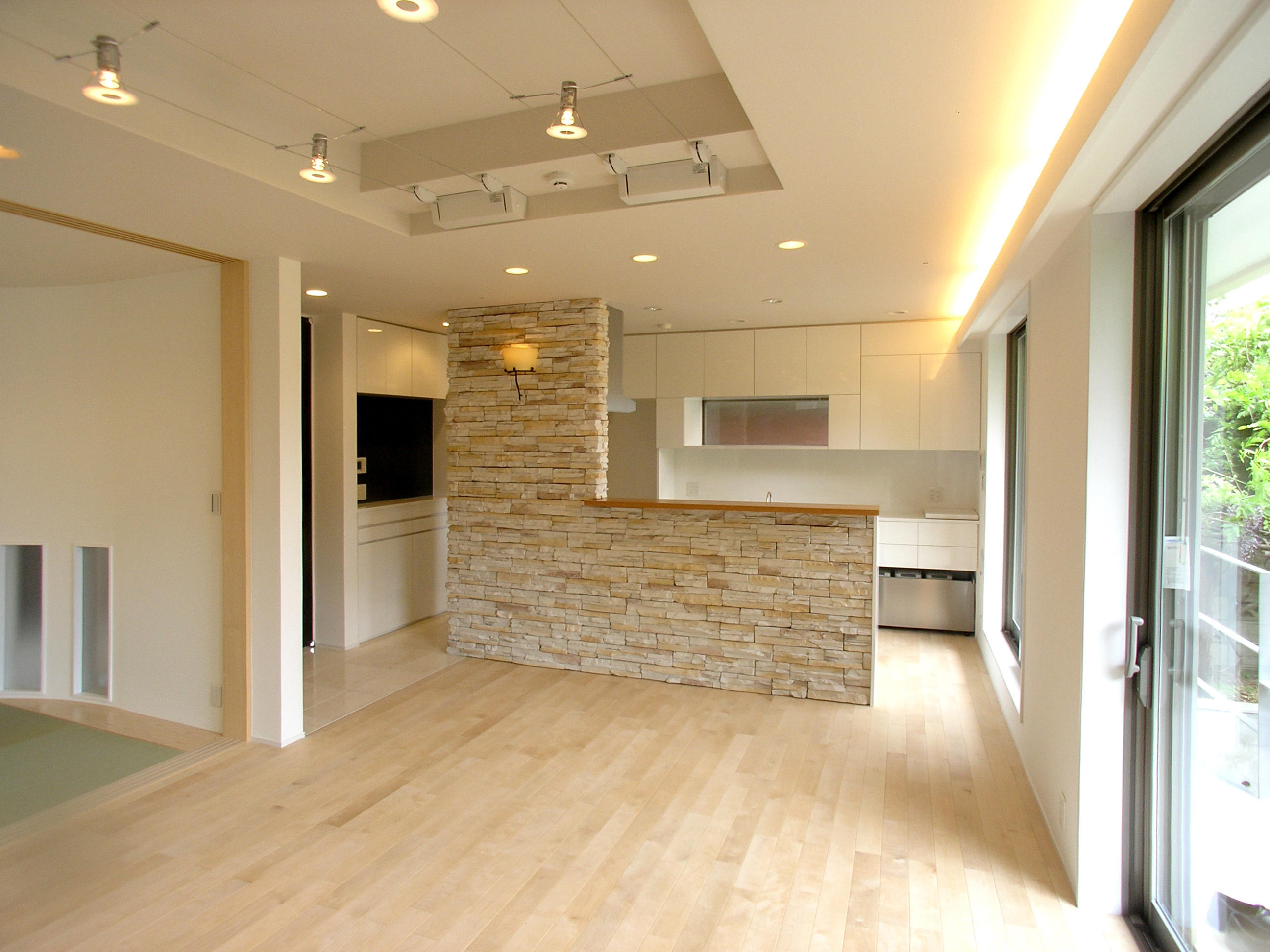 コンセプトは「光と風」。昼間は部屋の隅々まで太陽光が届き、外から入り込む風はそよ風となって通り抜ける。夜は雰囲気のあるライティングがゆたかな時間を演出します。さながらホテルのようなクオリティーを追及しつつ、五感で自然を感じる住宅を目指しました。