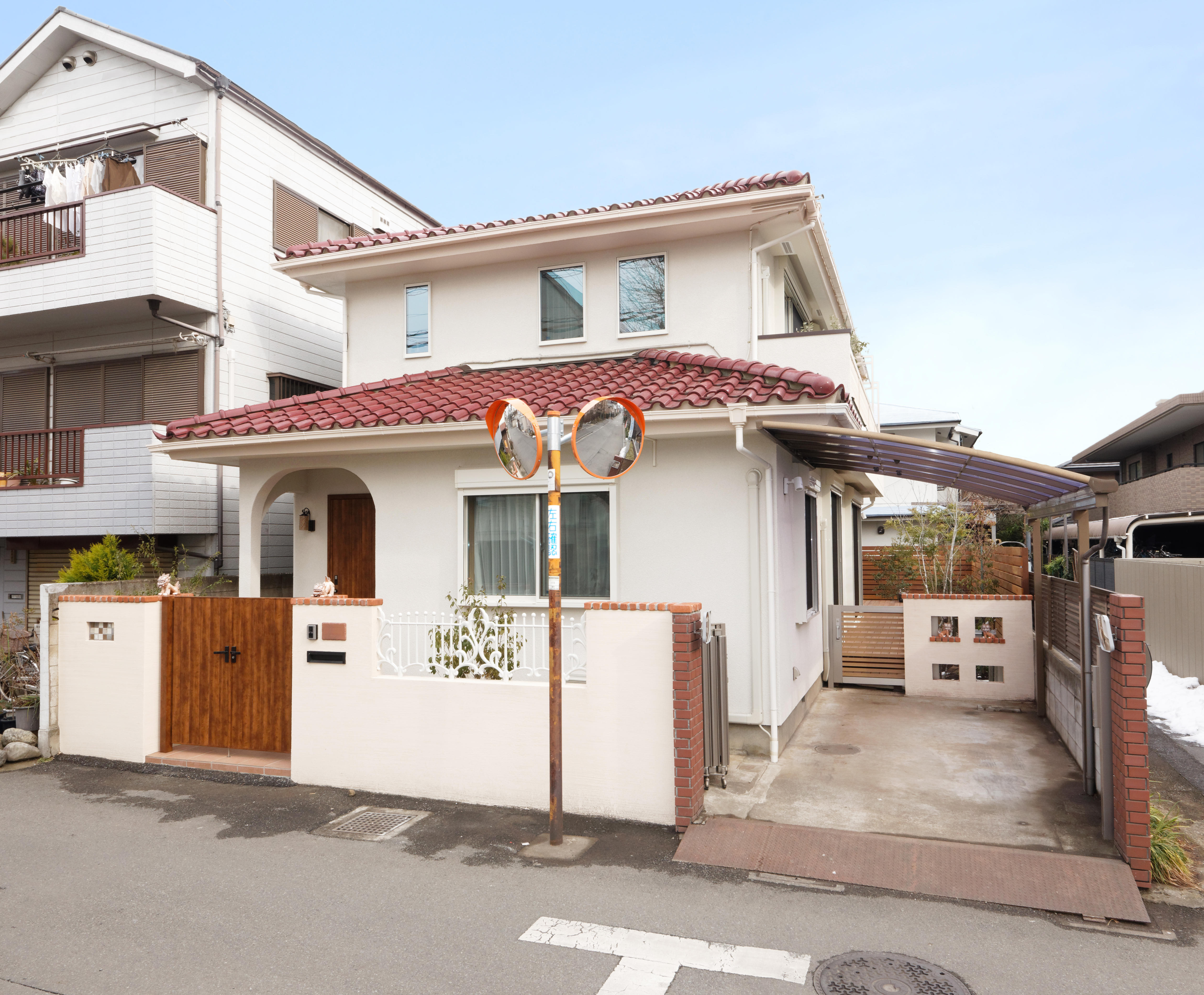 出窓やアーチ型の玄関、赤い瓦が可愛い外観のお宅ですが、古さが少し気になってきました。 そこで全体リフォームを施し、青空の似合うカントリー風の家に生まれ変わりました。