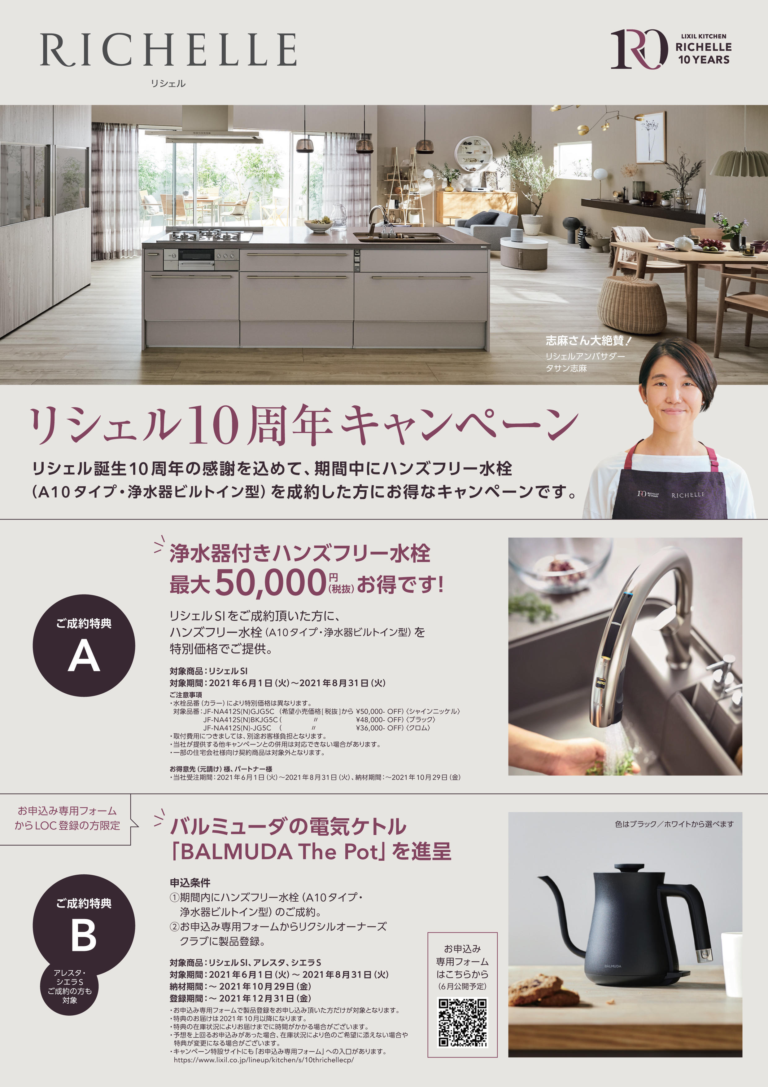 LIXILのキッチン、リシェルの10周年キャンペーンについてお知らせいたします。