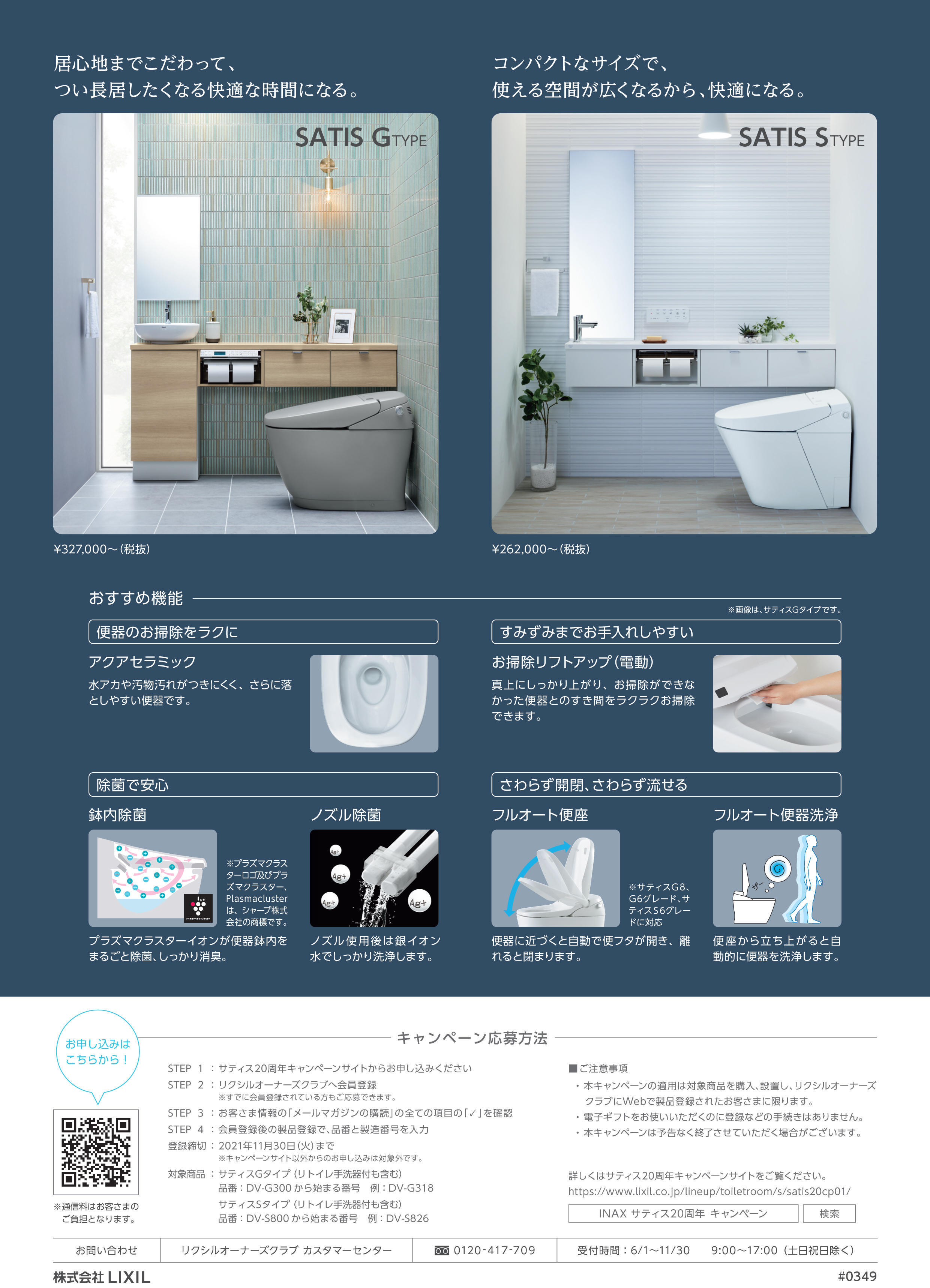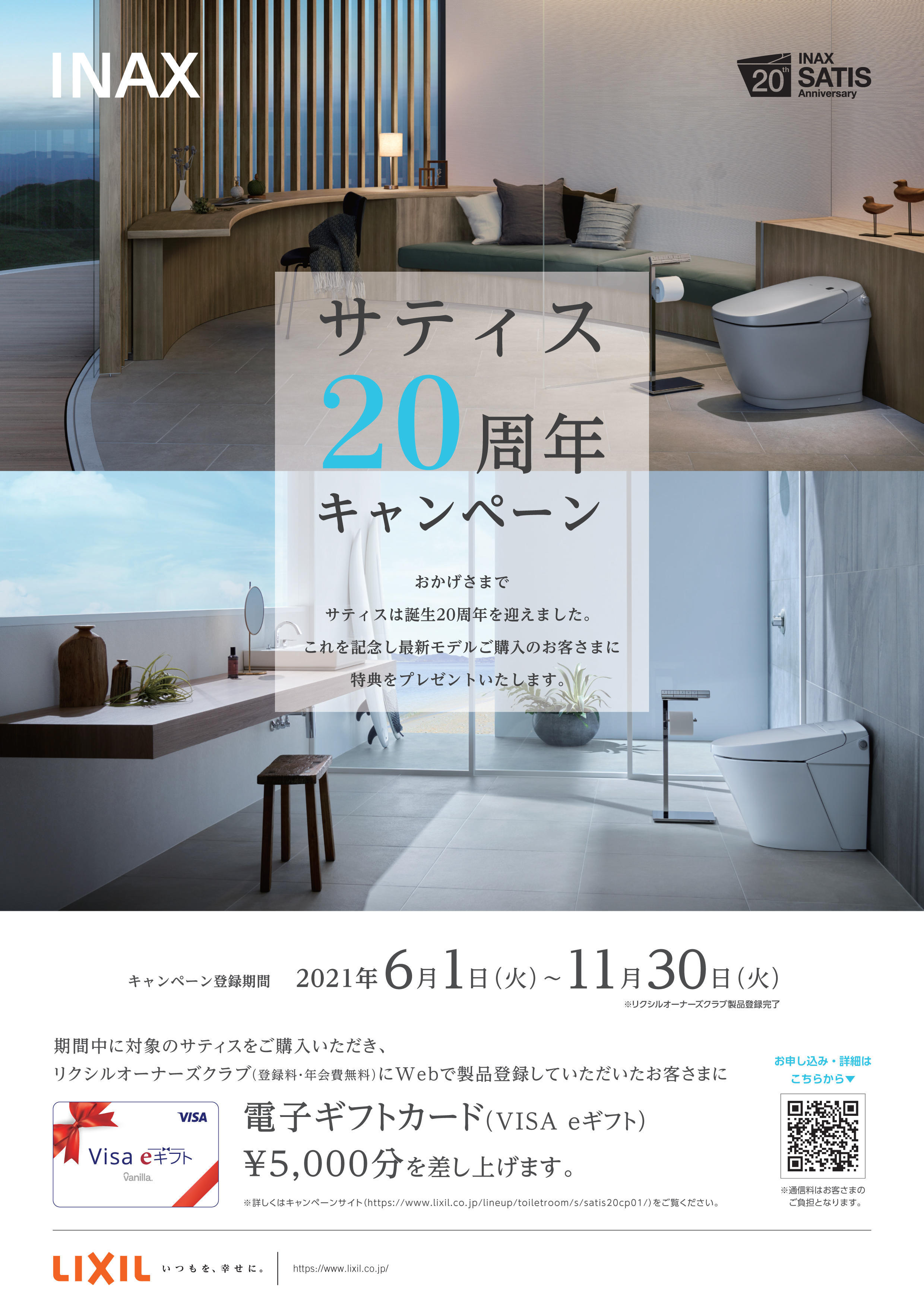 LIXILのトイレ、サティスが誕生20周年を記念し、キャンペーン中です!