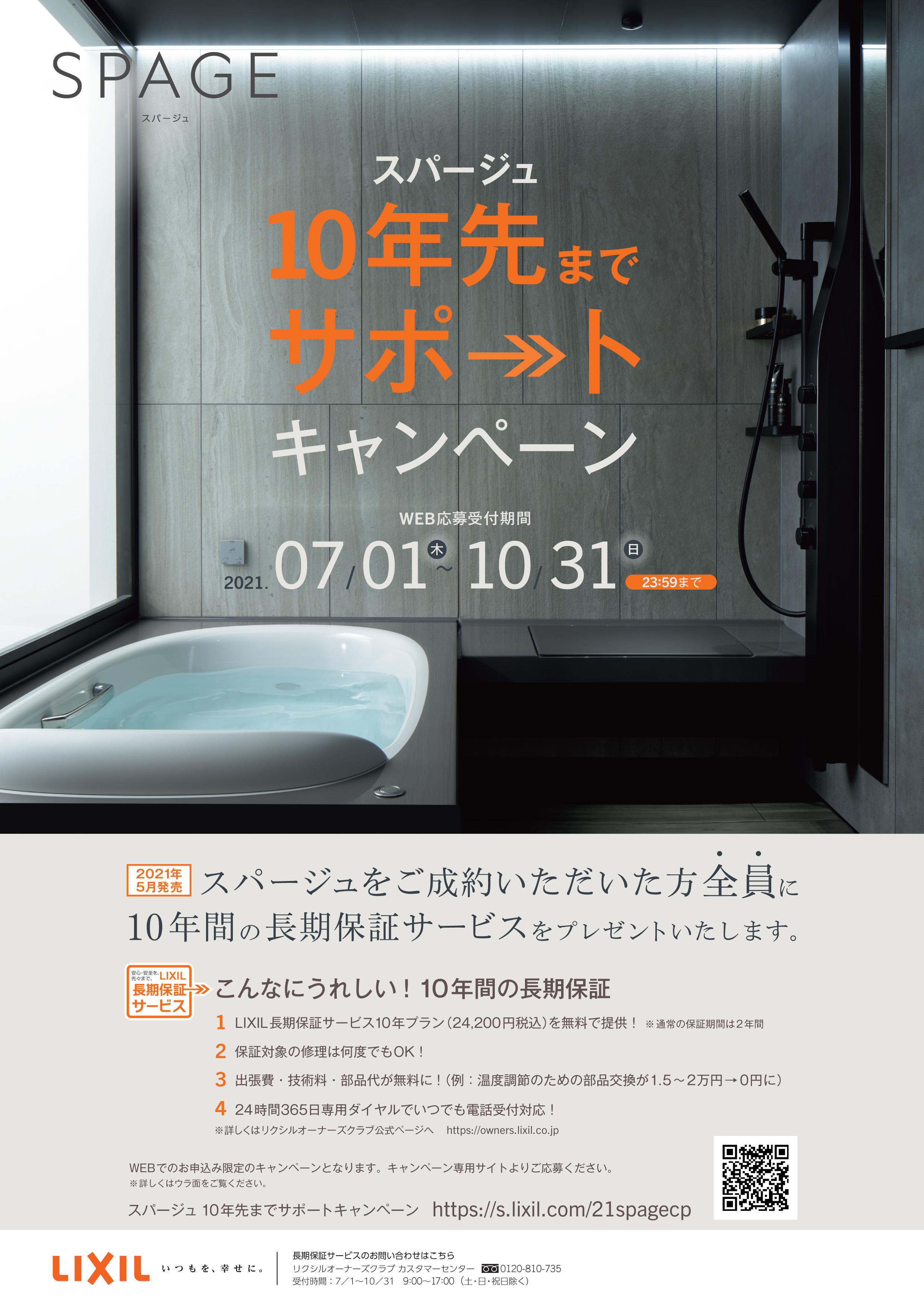 2021年5月発売のシステムバスルーム「スパージュ」をご成約いただいた方全員に