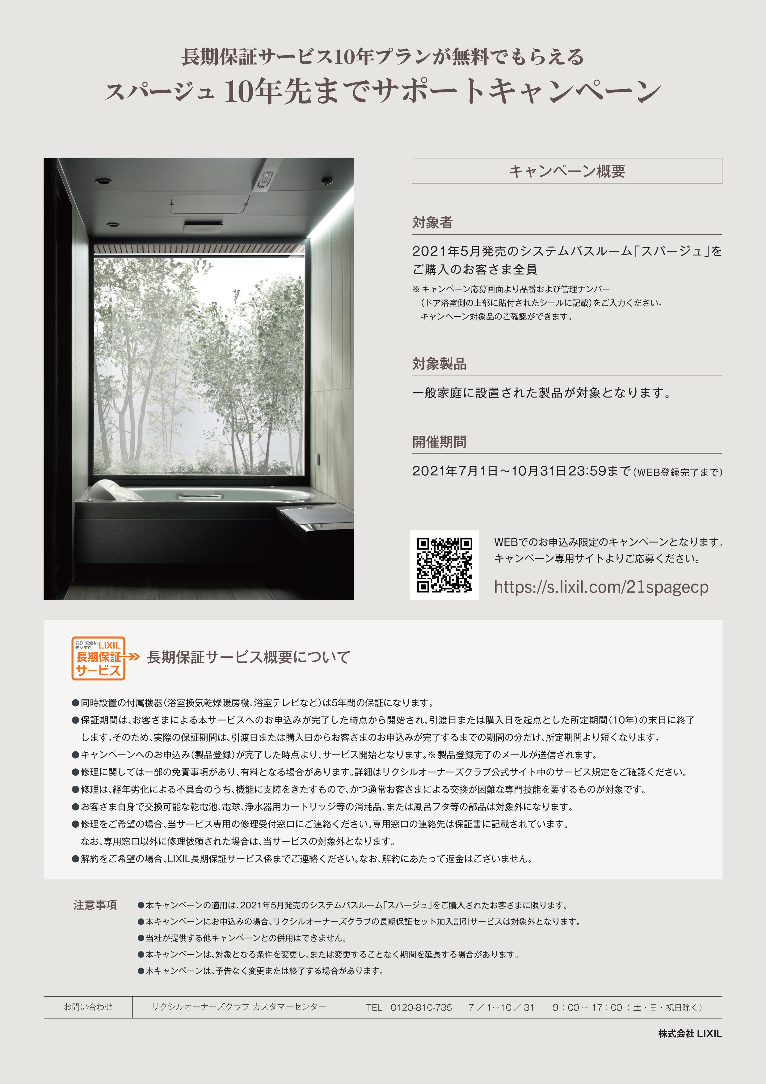 LIXILの浴室、「スパージュ」のキャンペーンについてお知らせいたします。