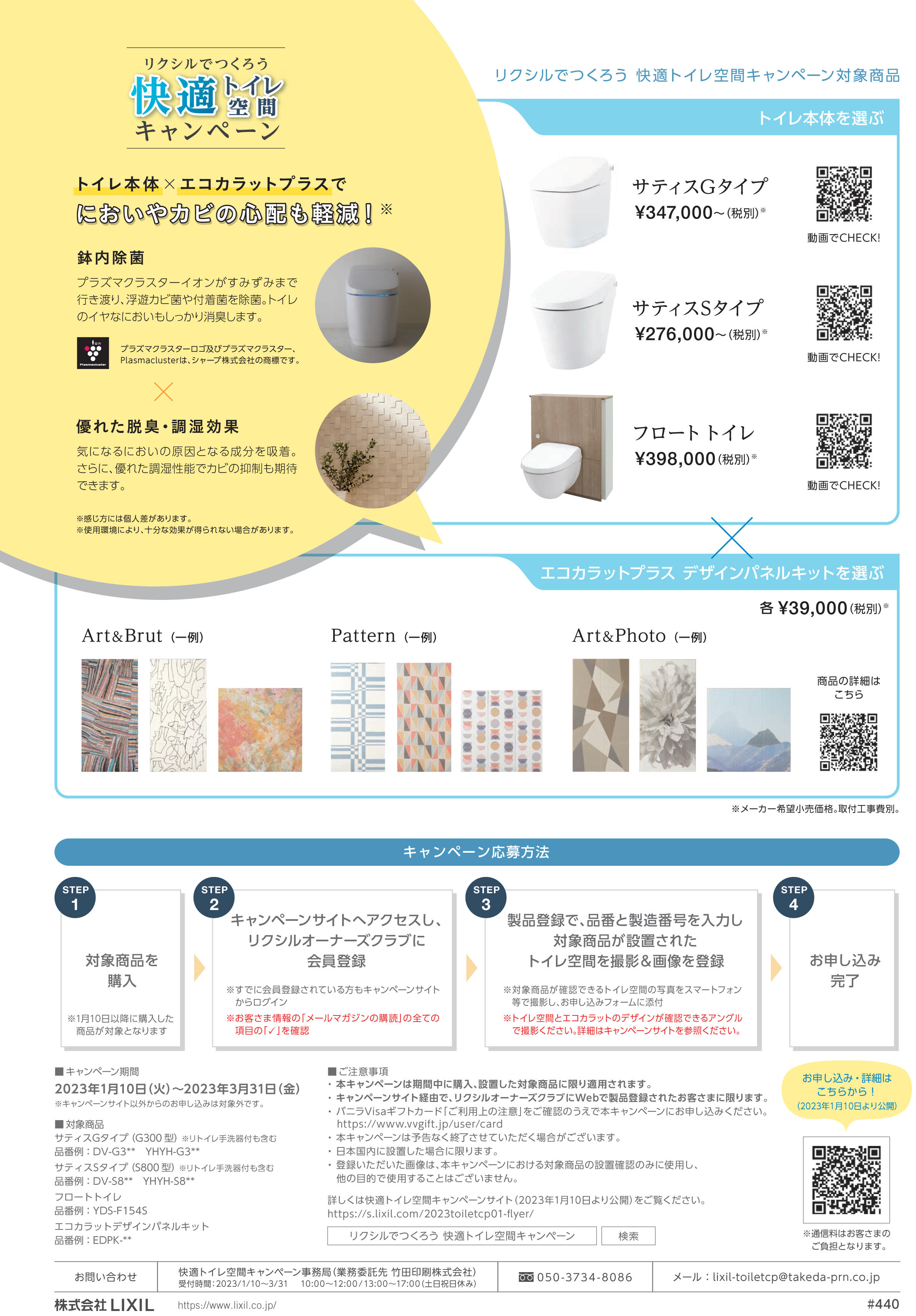 ご注意事項:リクシルオーナーズクラブに会員登録し、製品登録を行い、トイレ空間を撮影&画像を登録されたお客様に限ります