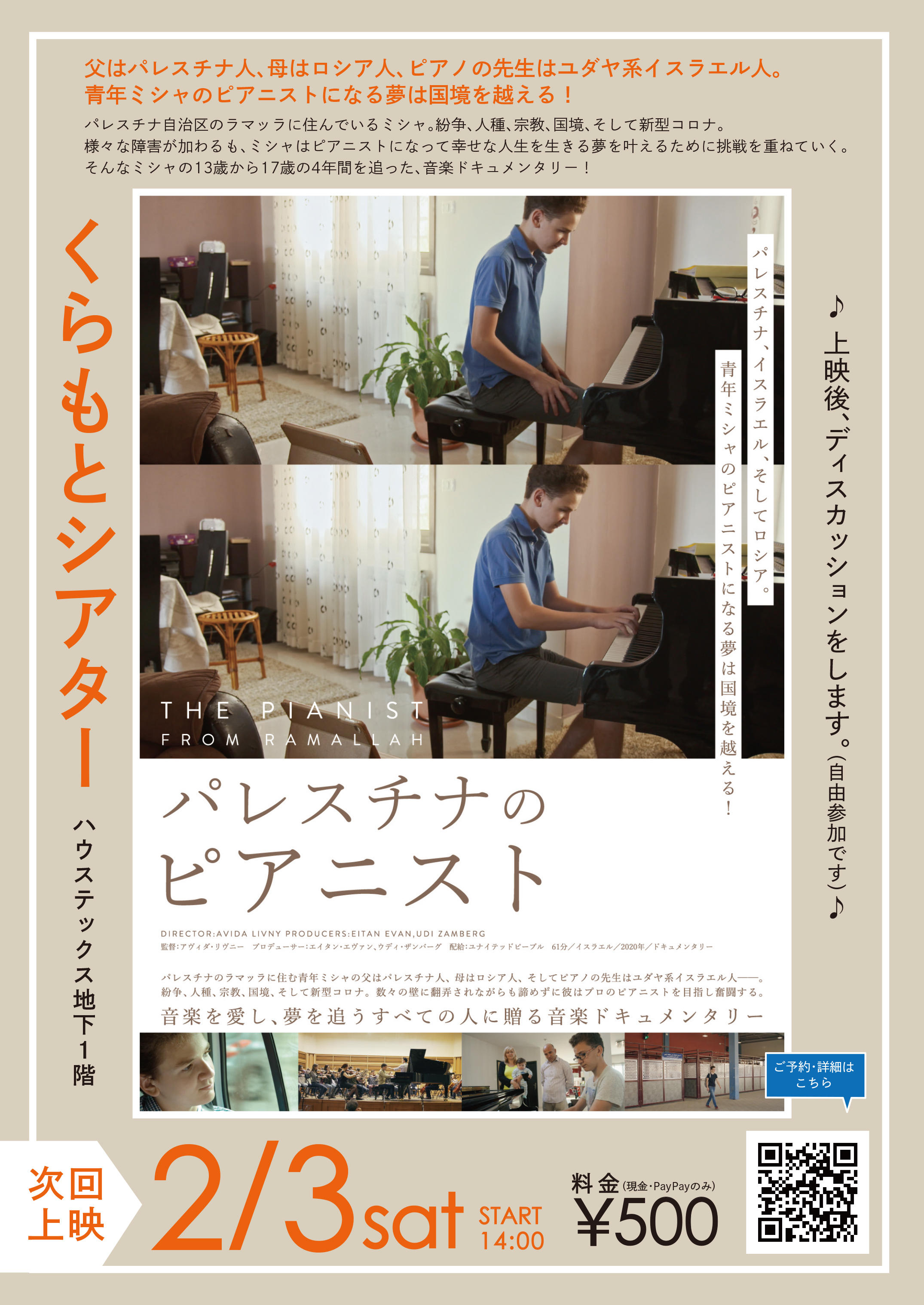 今回はお客様のリクエストが多かった「パレスチナのピアニスト」を上映します!