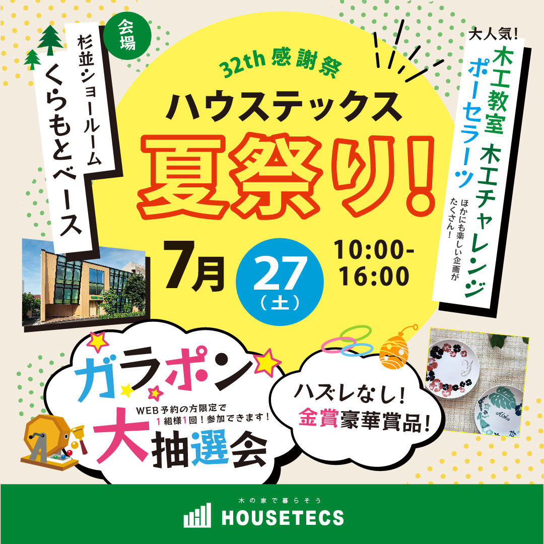 ハウステックス32周年感謝祭、ハウステックス夏祭りを7/27(土)に開催します!