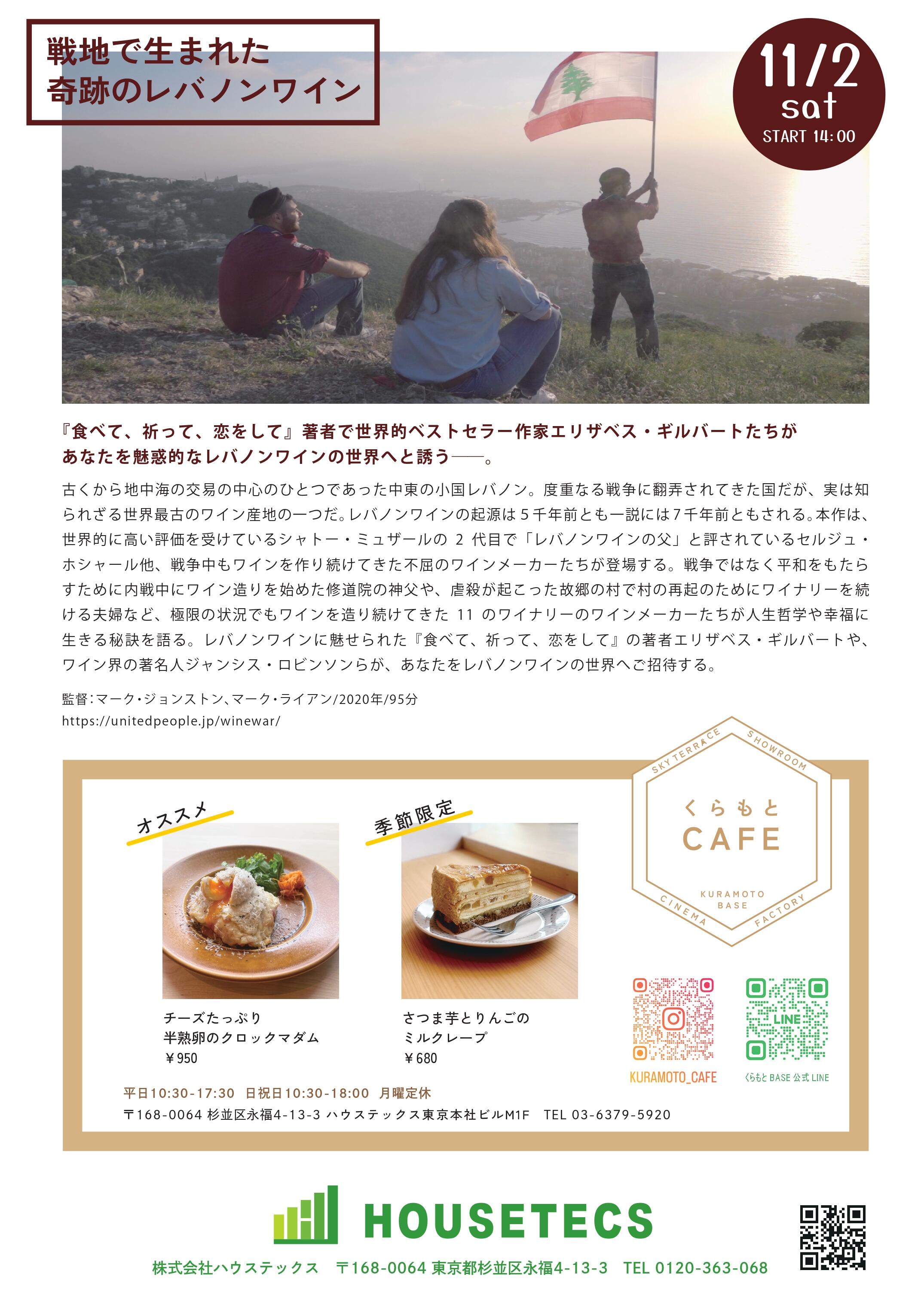 11/2(土)14:00~ハウステックス杉並ショールームB1F「くらもとシネマ」にて、映画を上映します。