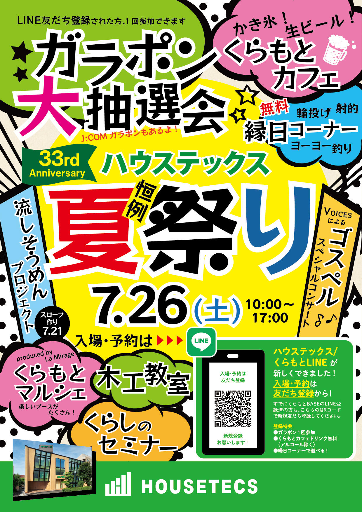 入場と各予約には、ハウステックスの新しくできたLINEの友だち登録から!