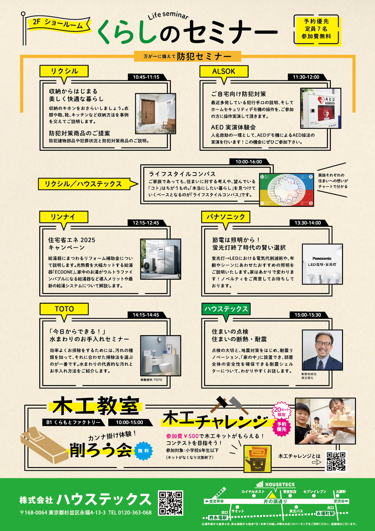 「くらしのセミナー」は、防犯セミナーをはじめ、省エネ、節電、水まわりのお手入れなど、