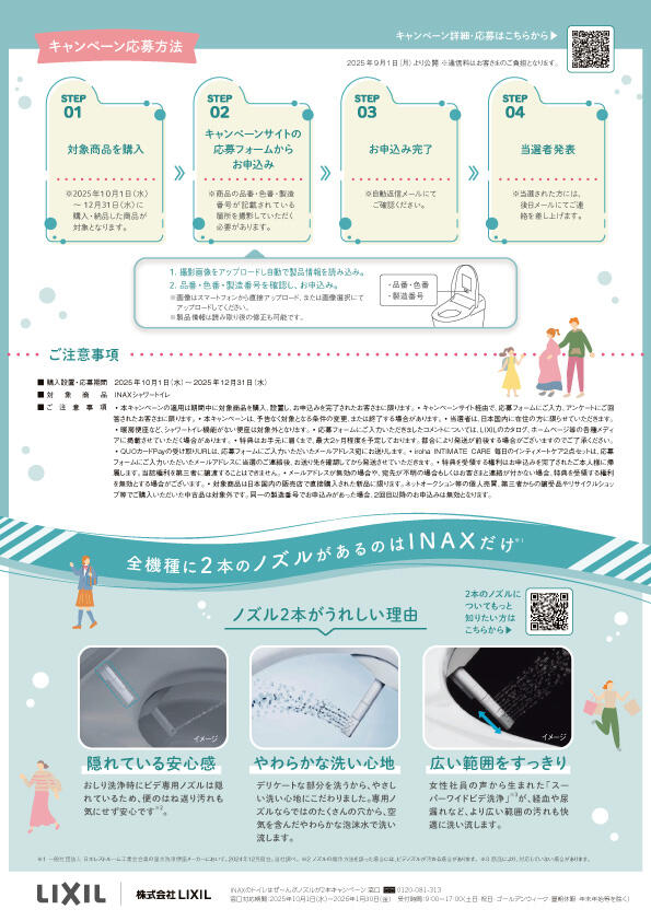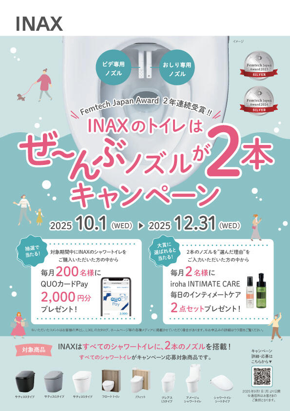 INAXのシャワートイレが、「ノズルが2本」をアピールするキャンペーンを開催中!
