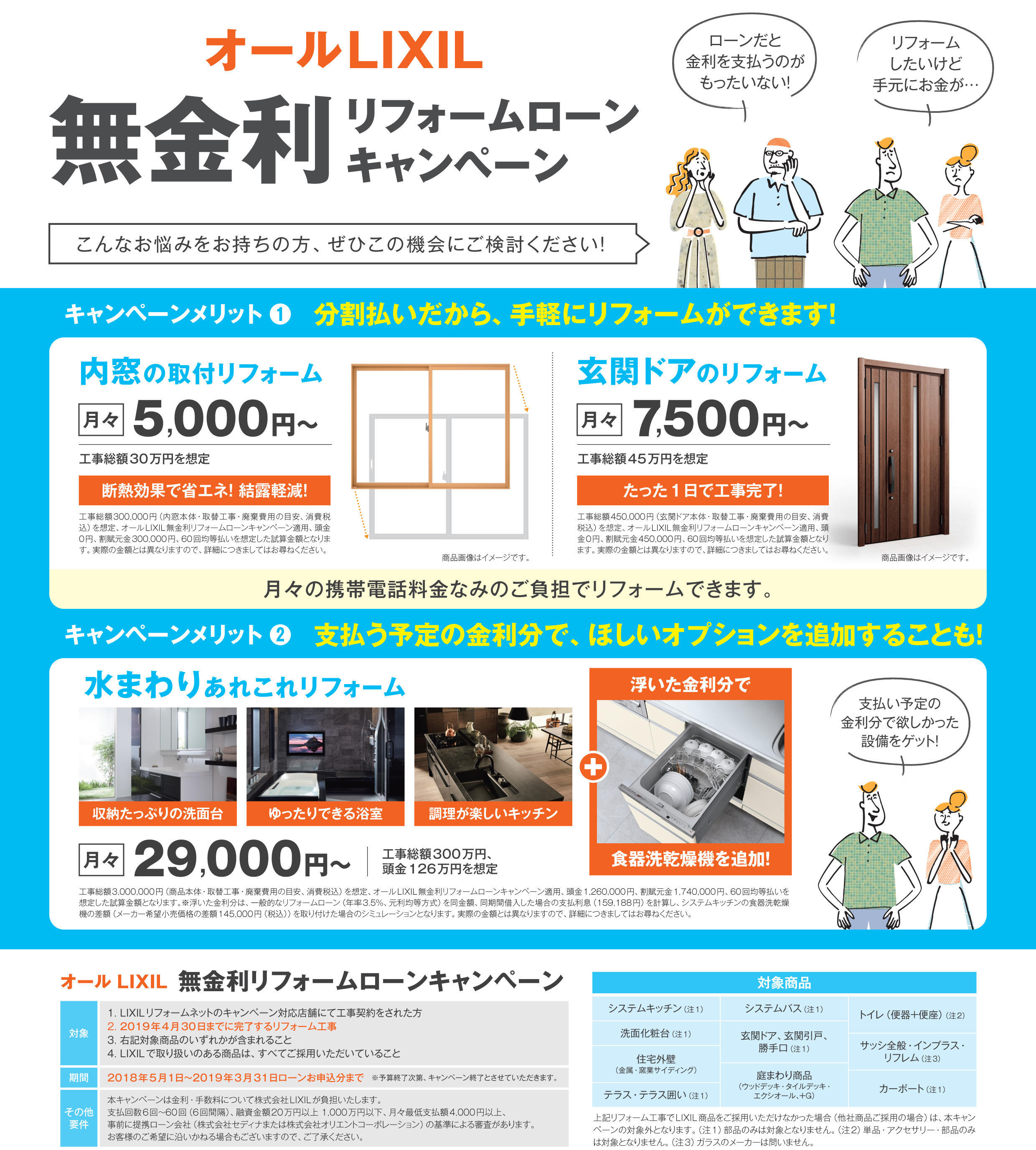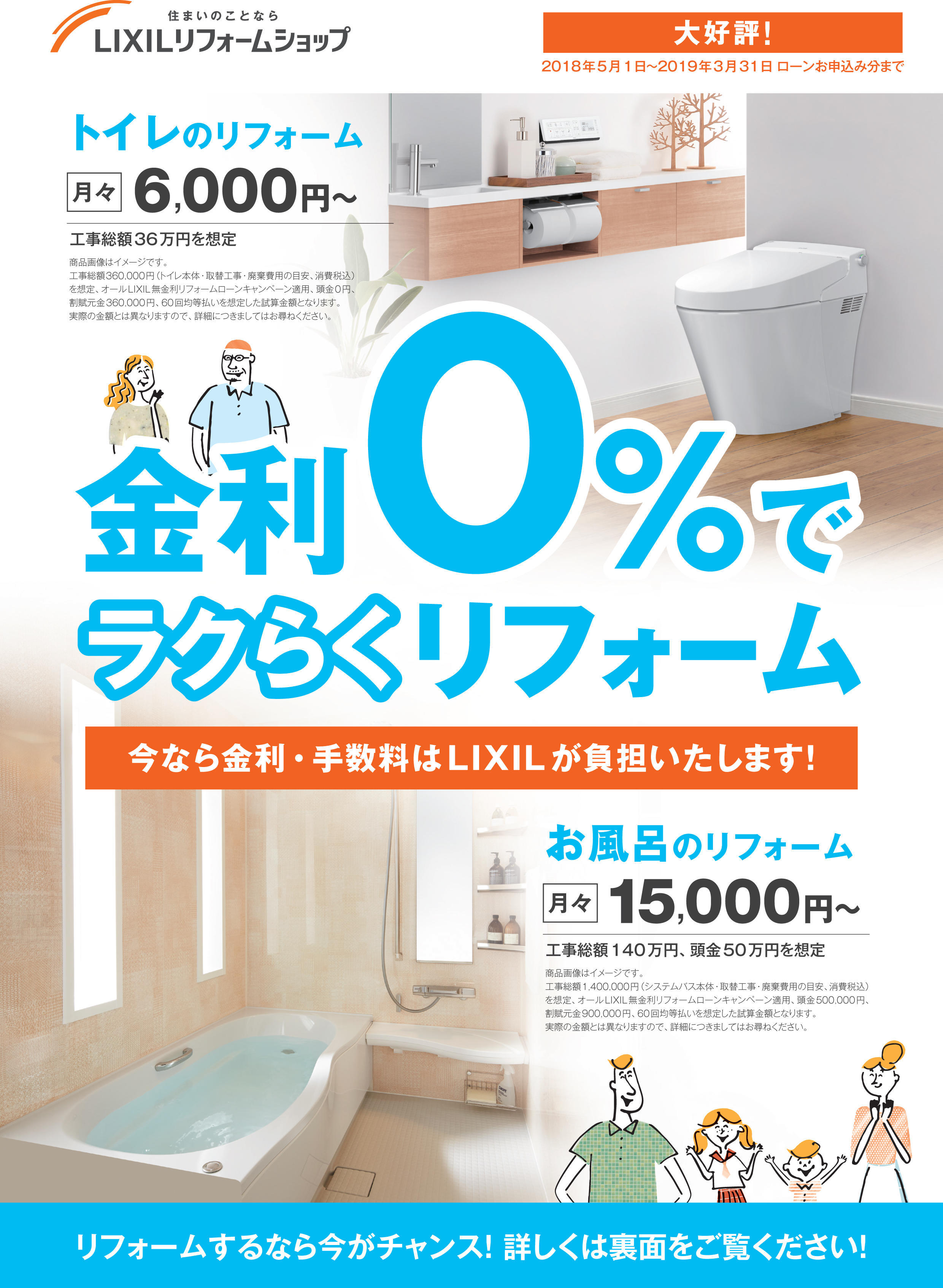 2018年5月1日より、LIXILの無金利リフォームローンキャンペーンが始まります。