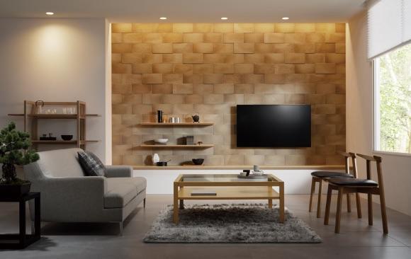 粘土鉱物などのとても小さな穴をもつ原料を高温加熱した内装壁材です。