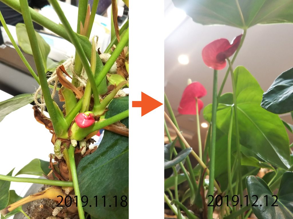 席の移動中に小さなかわいいアンスリウムの赤ちゃんを見つけました。