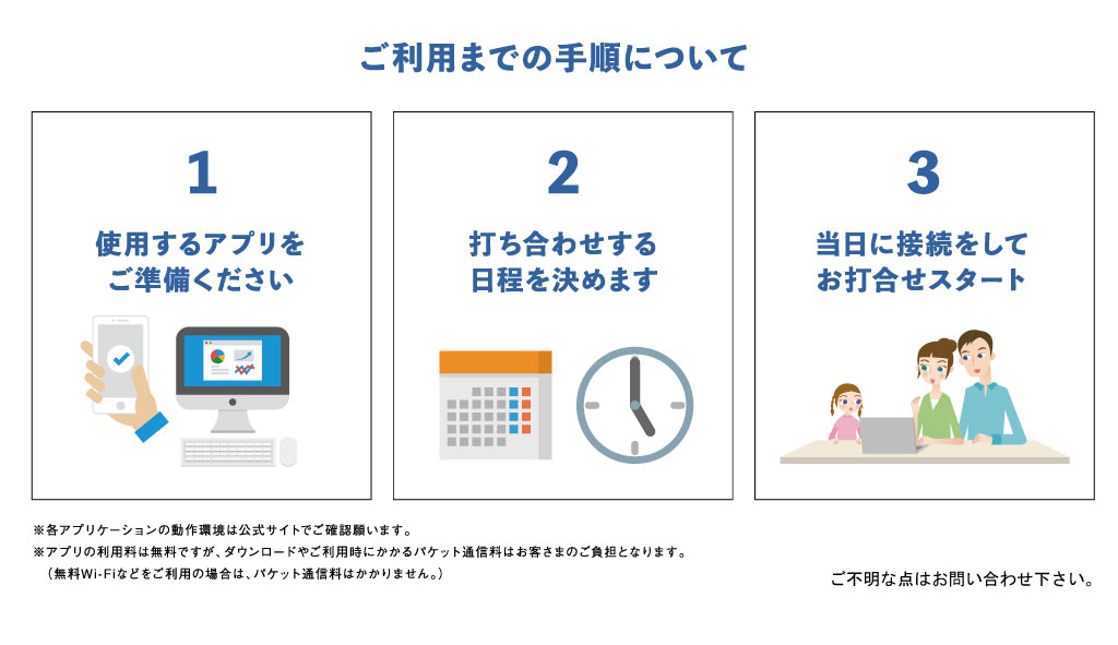 スマートフォンやパソコン、タブレットを使っておうちでお打合せができます