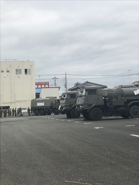 写真はお湯が使えない方のために、浴場を設営しているところです。