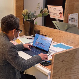 受付嬢をこなしながら、DTPデザインの仕事もこなす後ろ姿の素敵なこと!