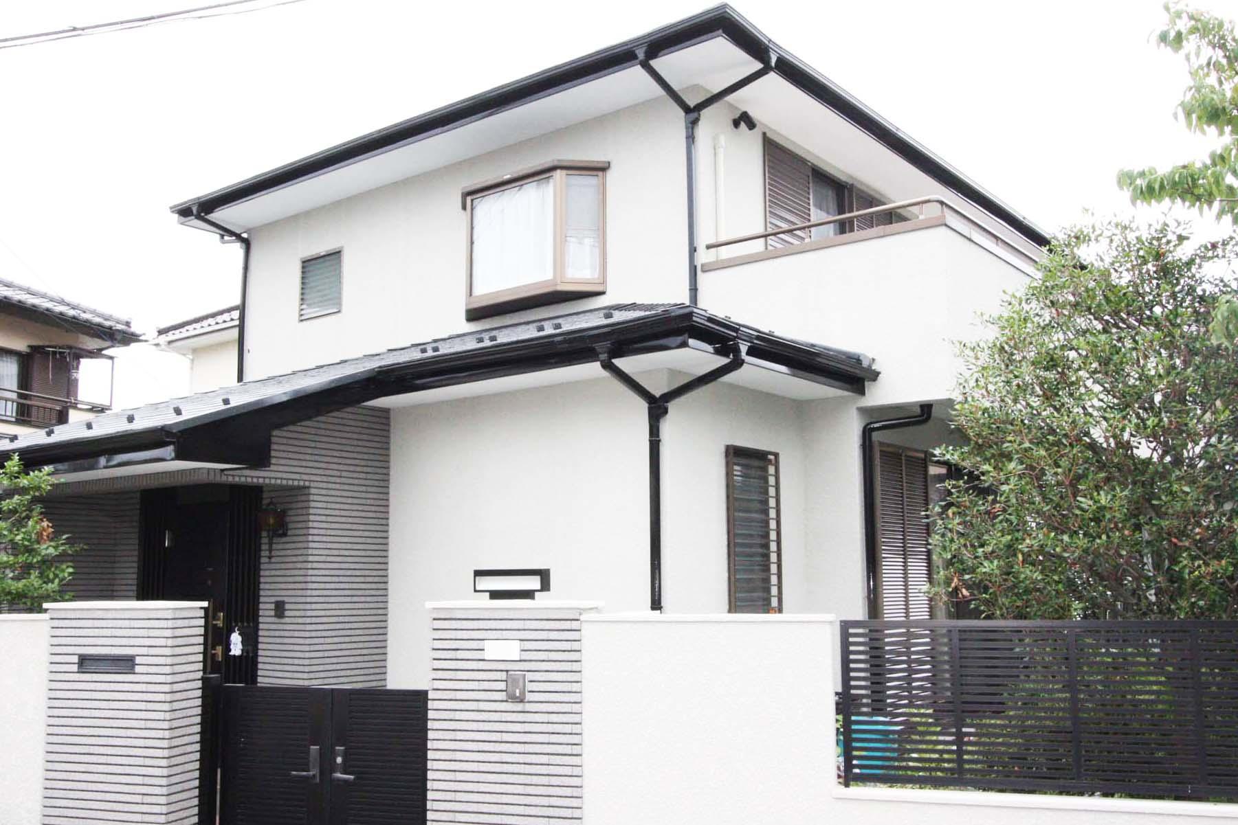 色が抜けヒビが入っていた外壁を、吹付け塗装で重厚感のある雰囲気に。1枚壁のような見た目の中にも立体感があり、まるで新築のような仕上がりに!