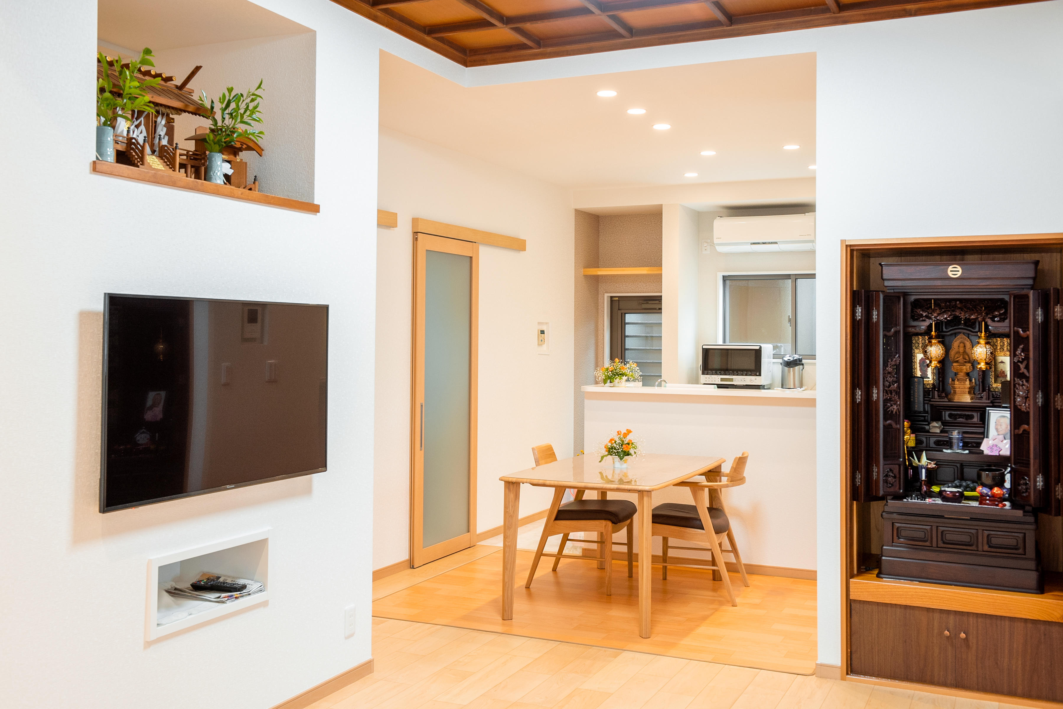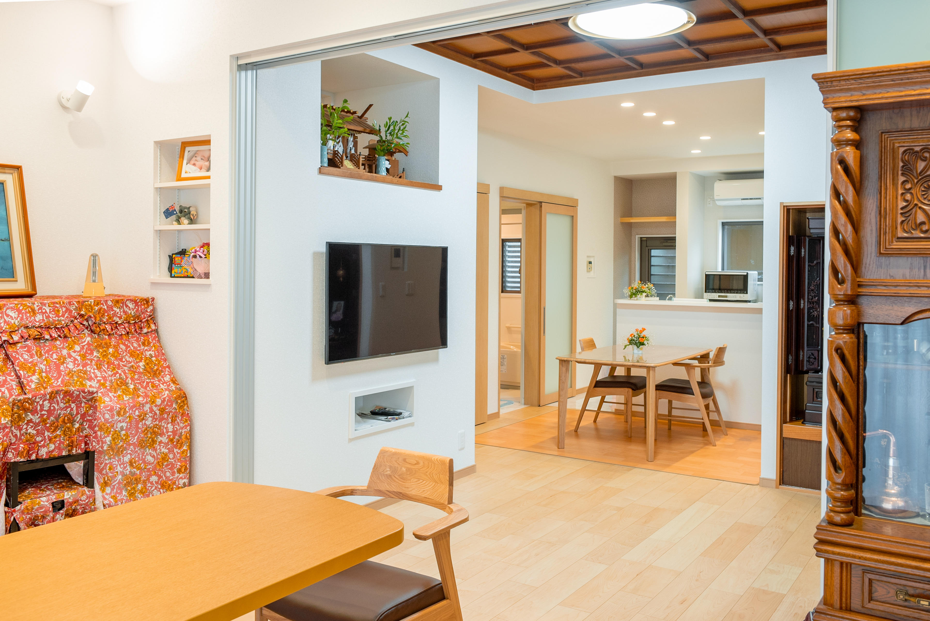 リノベーションするにあたり、お父様が当時力を入れて作られた格天井と、仏壇の位置は変えたくないとのご希望で間取りに制限はありました。思い出を残しつつ、暮らしやすく改築したいというご希望でスタートしたリノベーションでした。