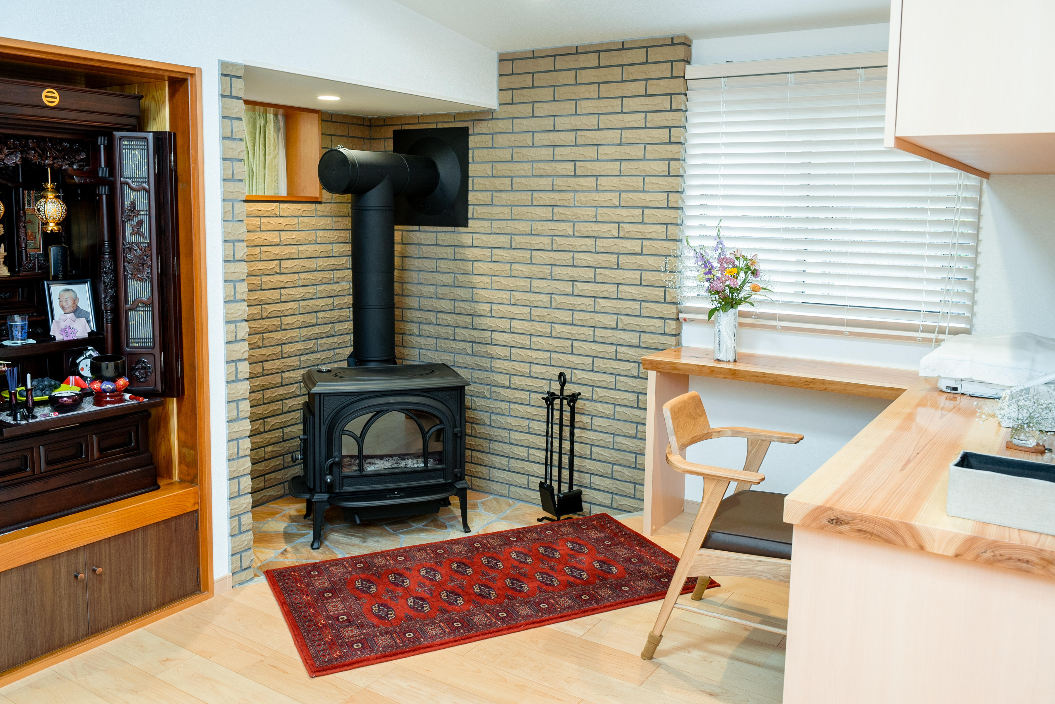 茶の間が中央にあり、南に応接間、北に台所があり、それぞれが壁で仕切られ陽が当たりづらく、暗くて寒い。庭木を切ったことで廃材木が出て、それなら薪ストーブを設置してみようかということに。