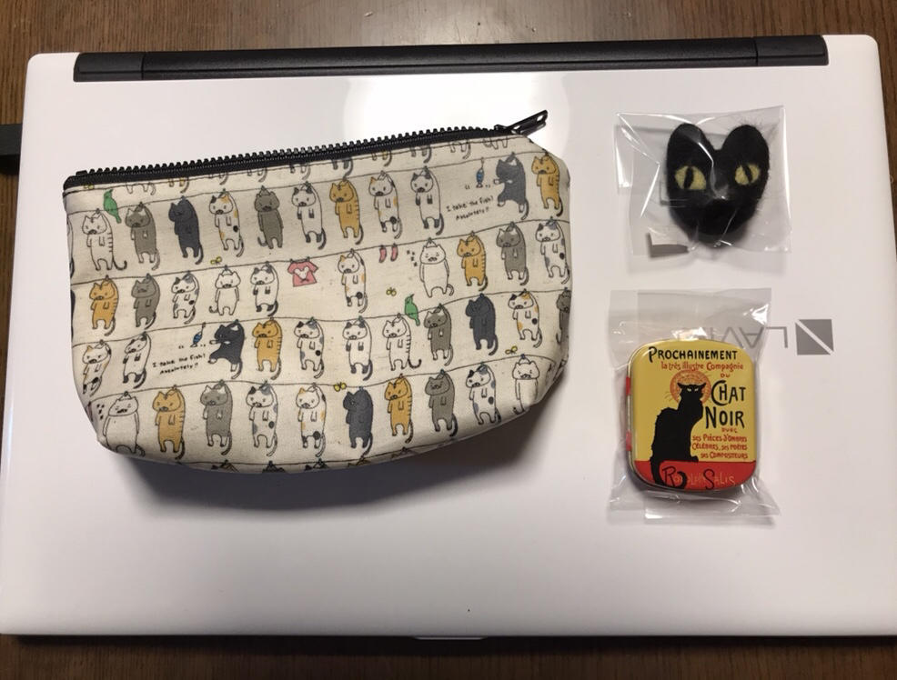 可愛いでしょう!! ポーチと猫缶とブローチです