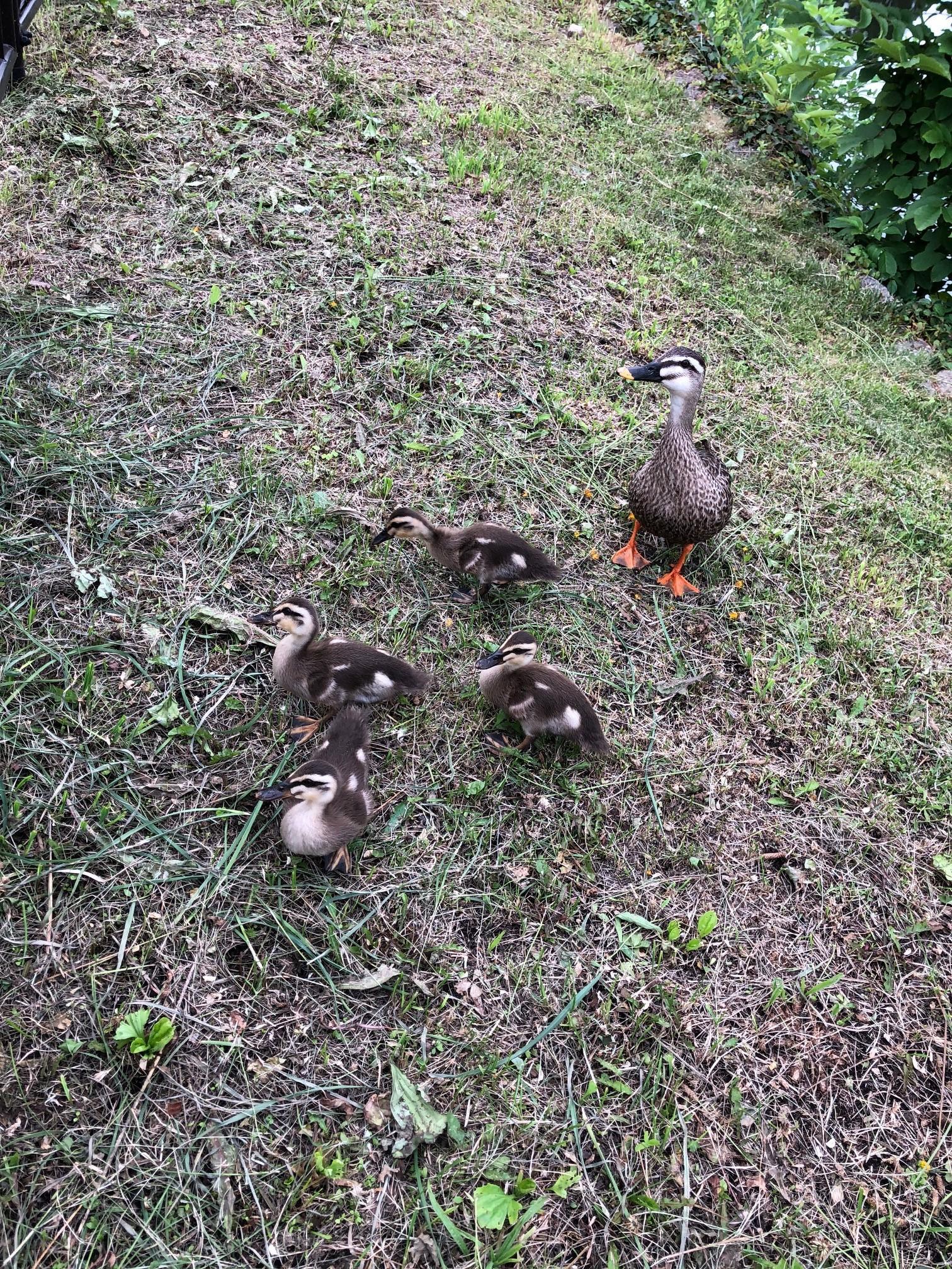 こんな 至近距離でカモを見たのは初めて!それに子ガモも一緒に!!