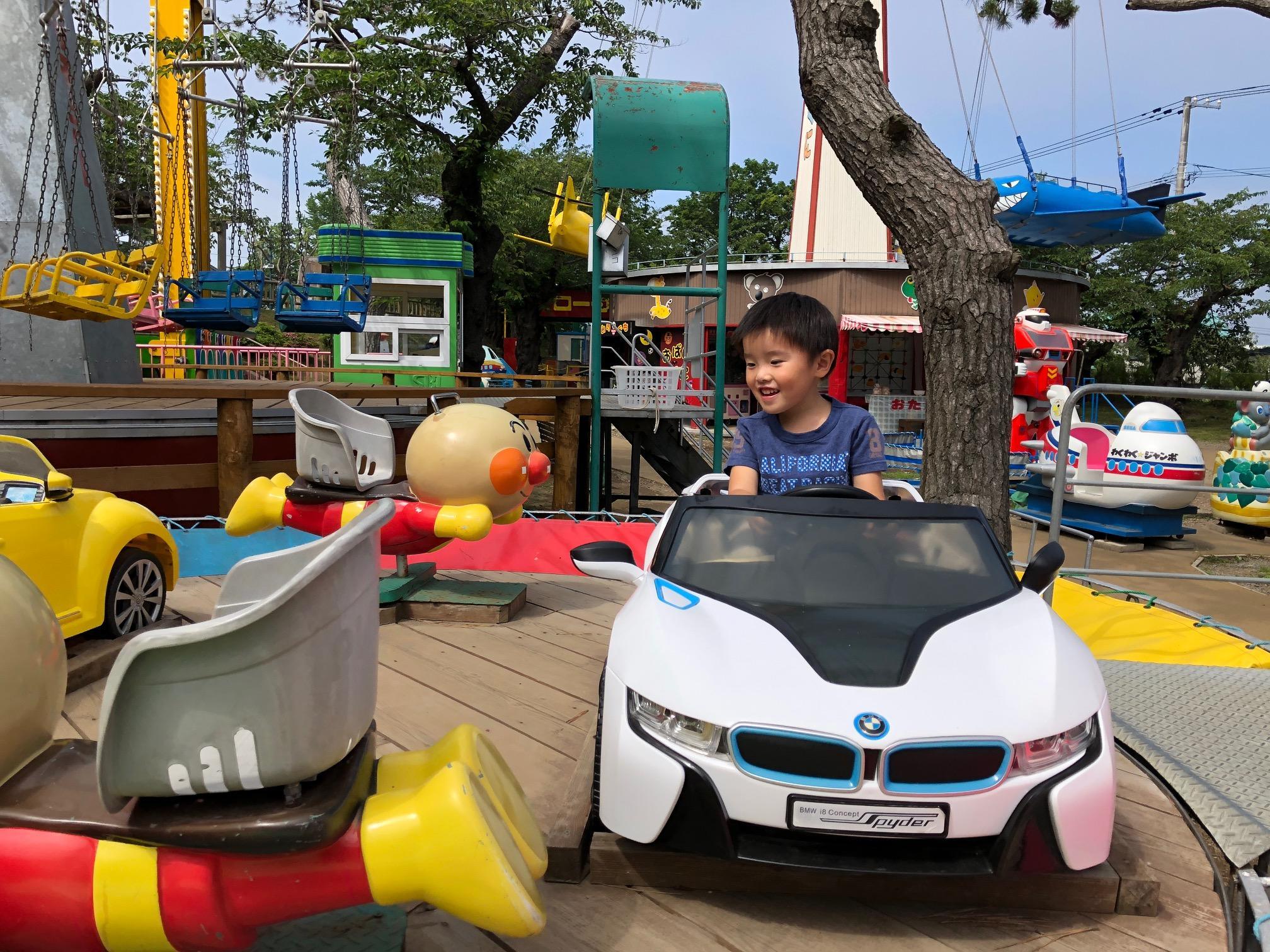 ↑ 最初はこれ。まぁ一人で乗るやつでしたが、車が好きなので楽しかったようです。