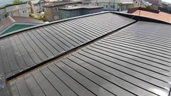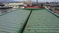 まだ写真の程度であれば塗替えが可能ですが、錆の部分から穴が開いていれば塗替えではなく屋根の張替のみになります