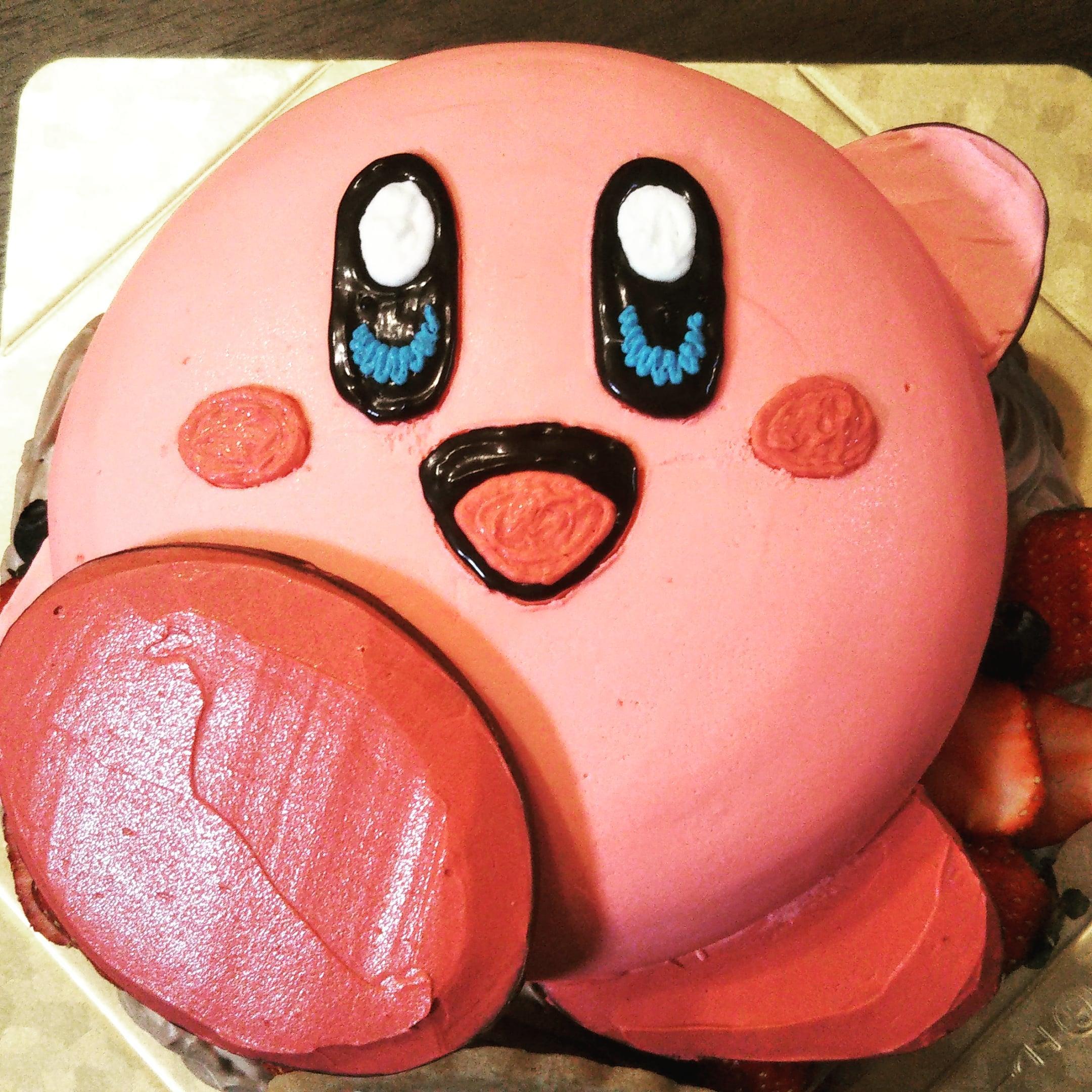 ケーキ屋さんで「カービィ」の立体ケーキ作ってもらいました。