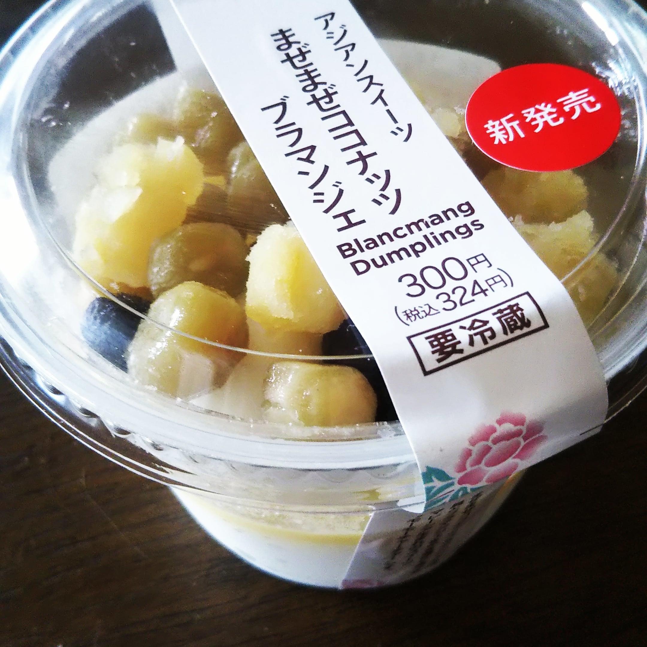 ココナッツ味のブランマンジェにお豆と白玉とサツマイモペーストを混ぜ混ぜして食べます。
