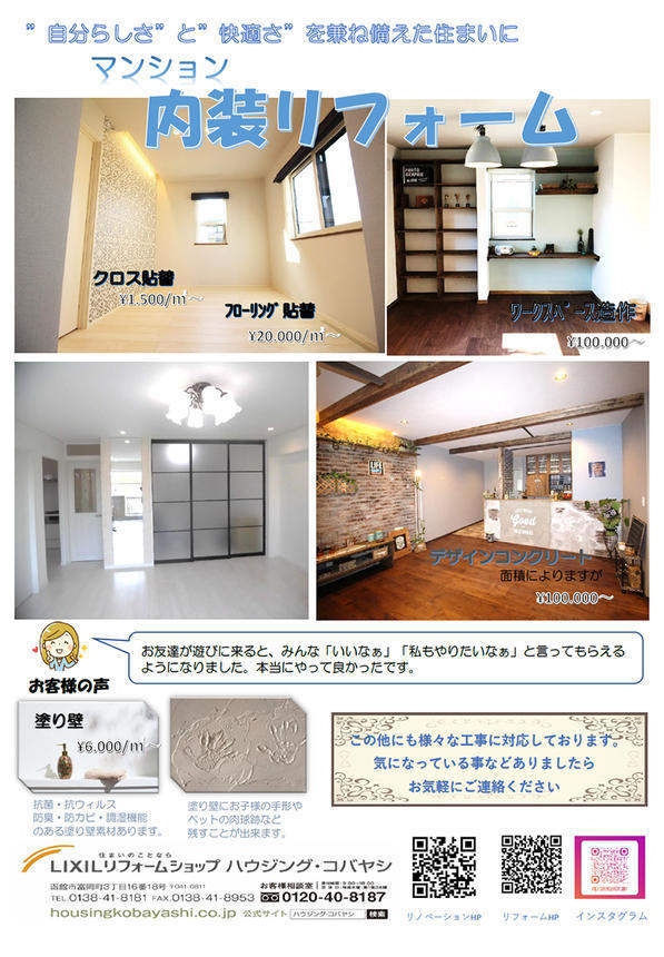 ハウジング・コバヤシではマンションリフォームもお承りしております。