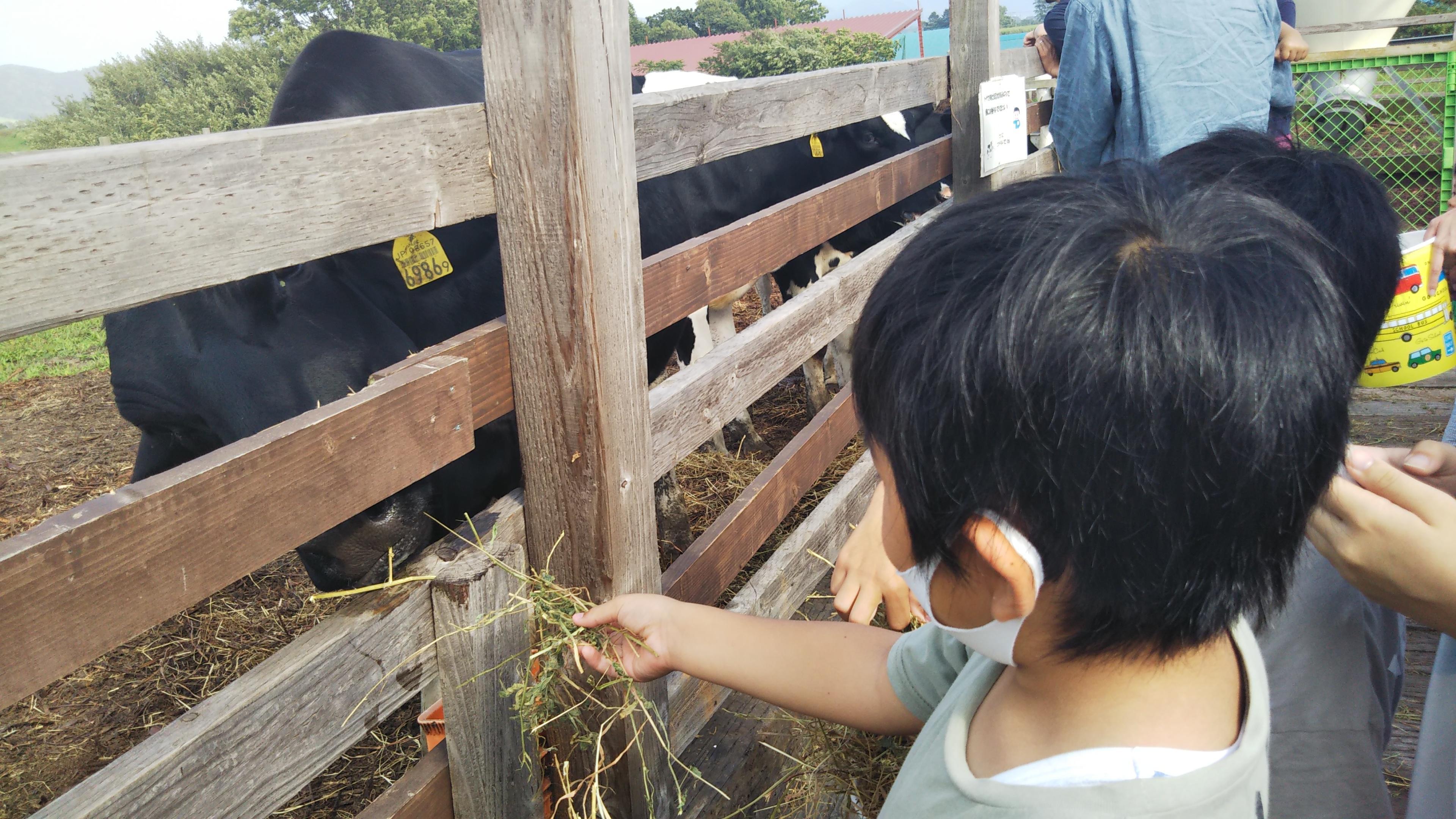 すごい間近に牛さんのお顔がきて、楽しそうにご飯をあげてました。