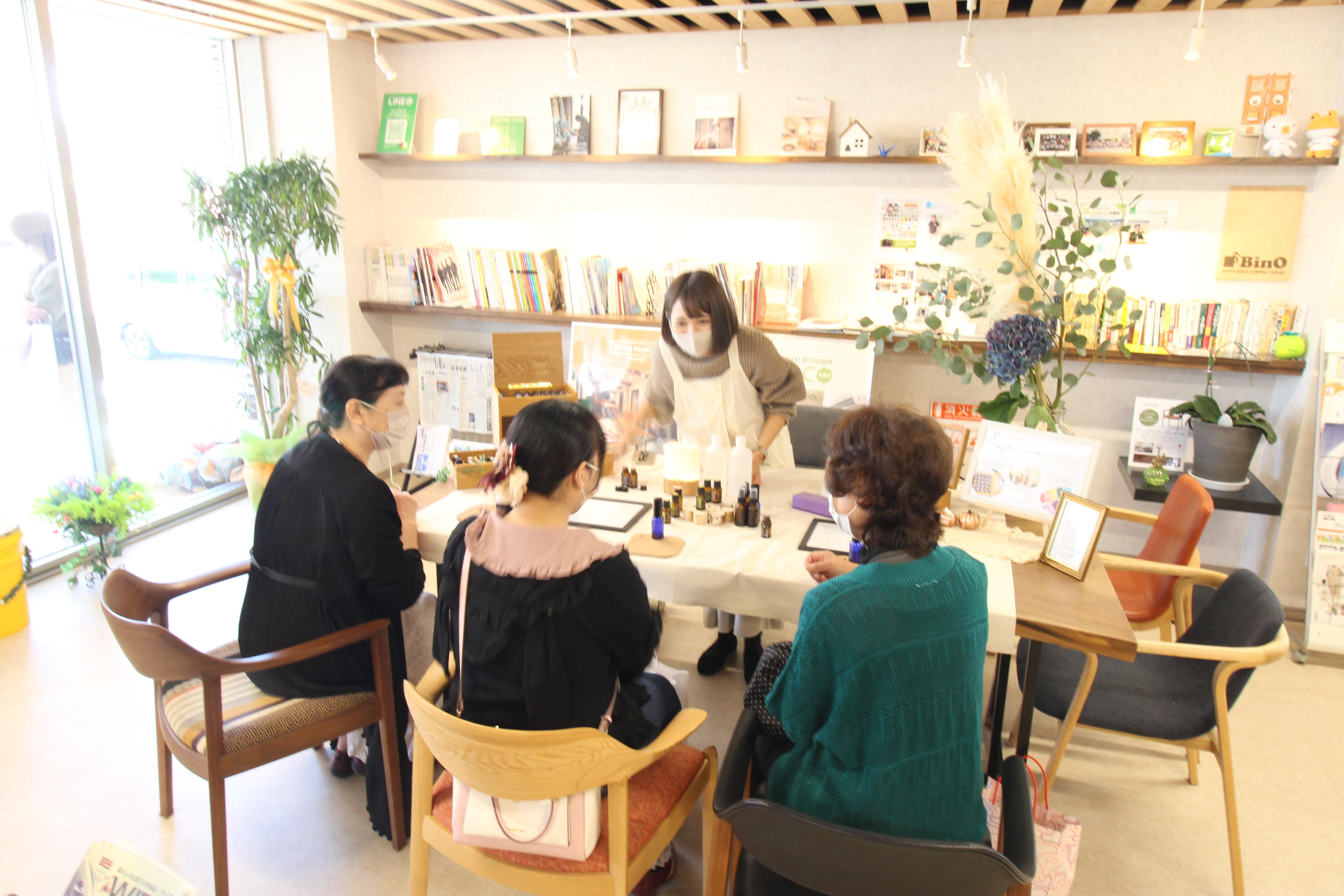 社内では、アロマオイルの講師をされている方にOBさんに来ていただき