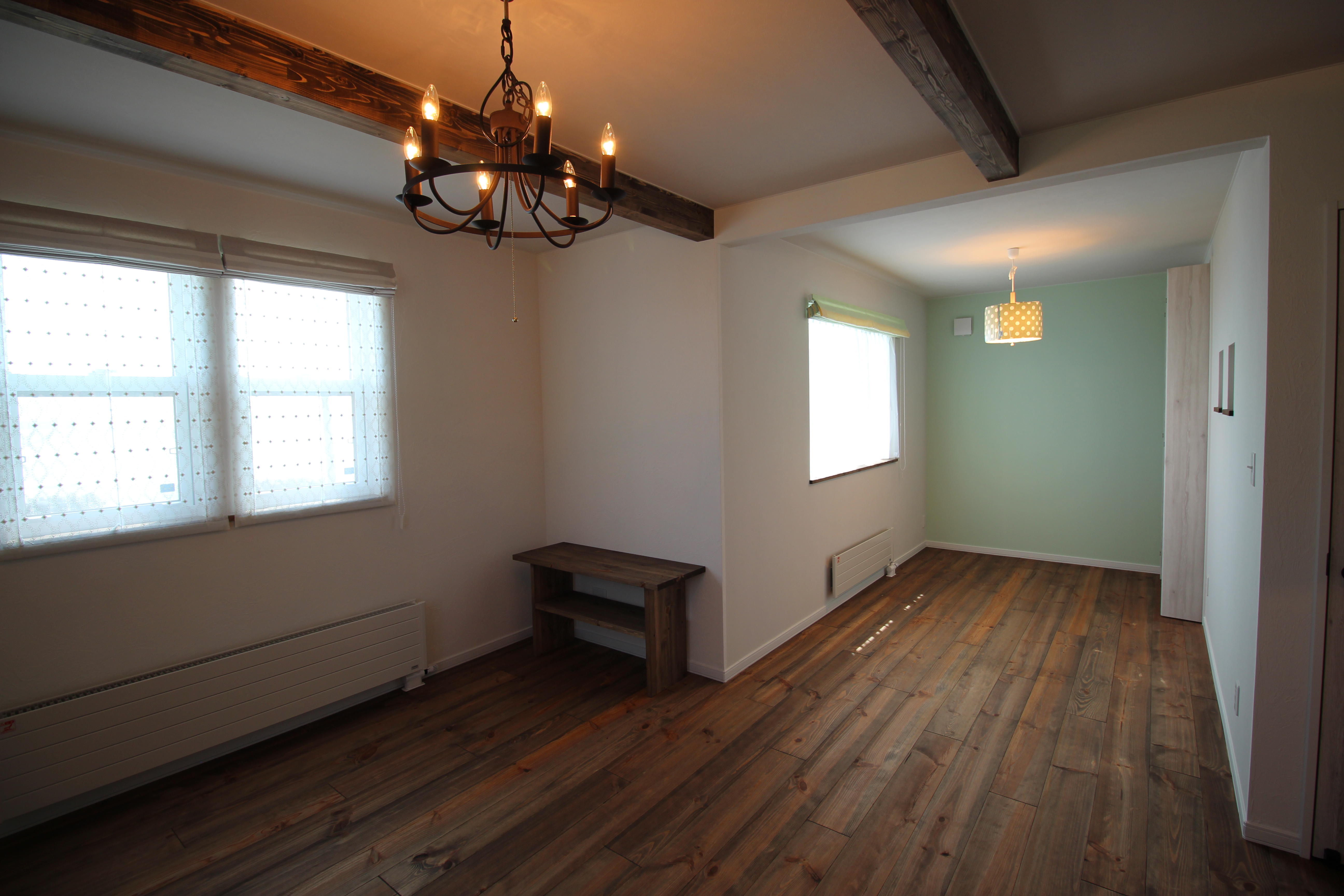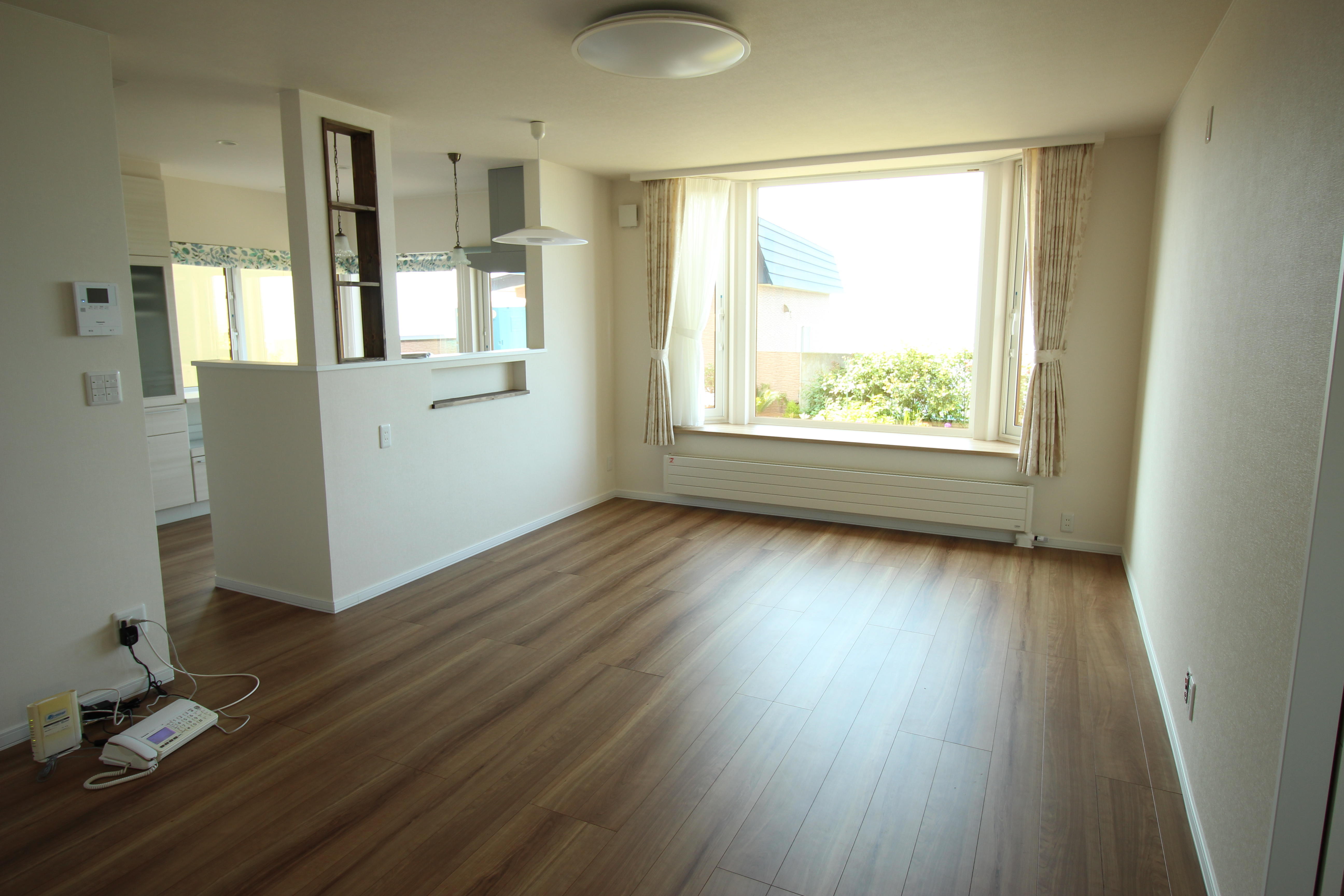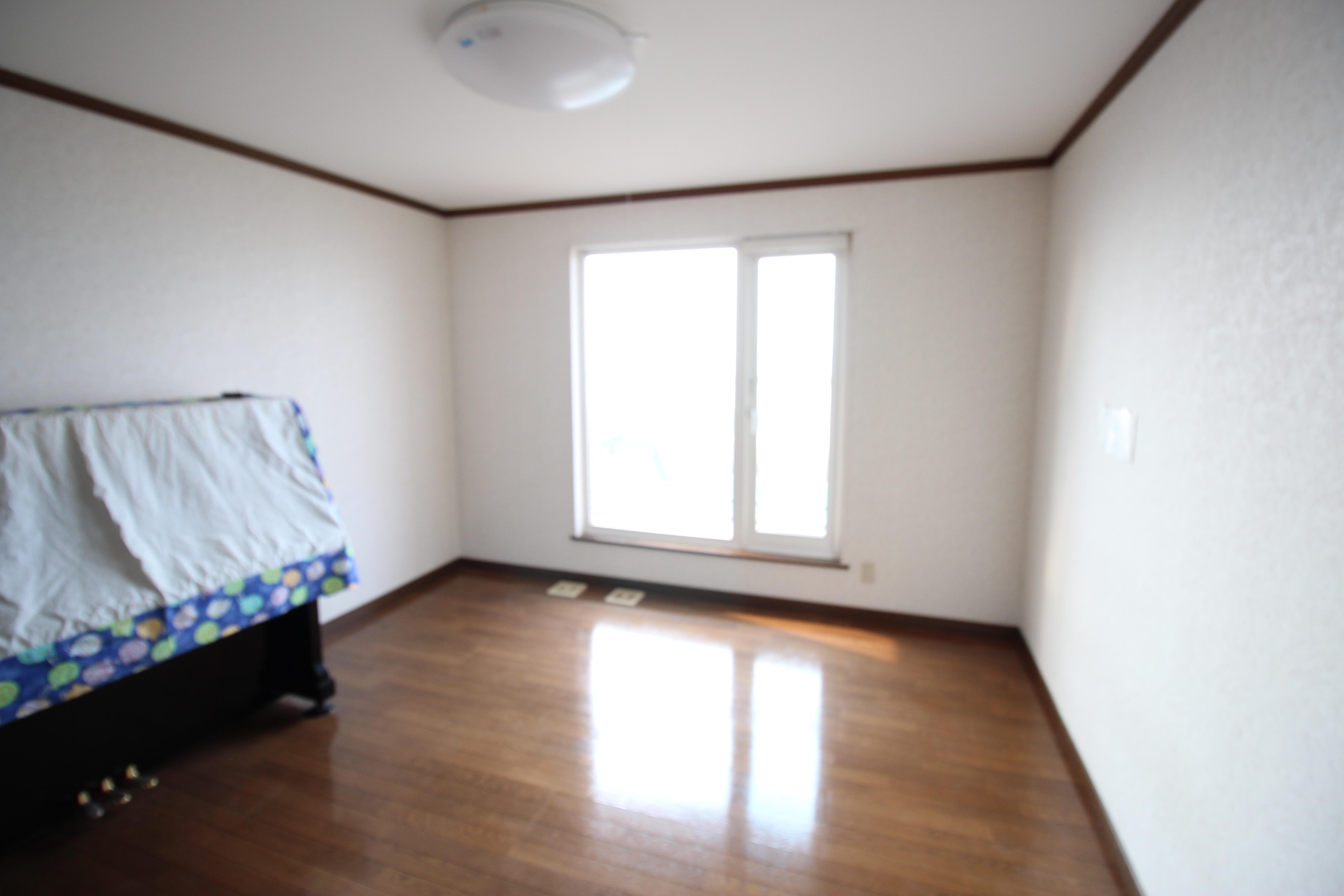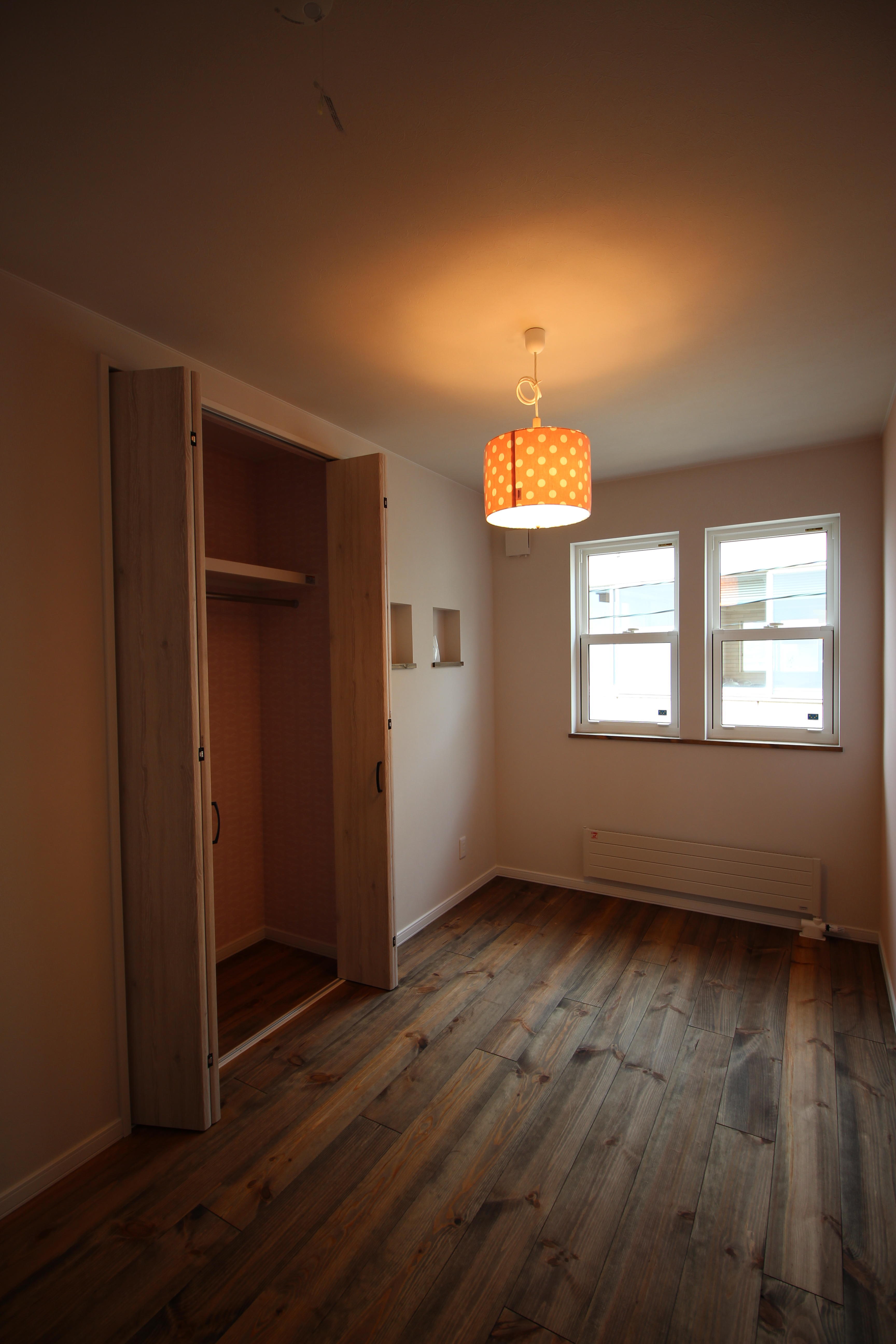 将来は仕切りを入れて子供部屋になります。今は小さなお子様ですので、リビングつながりとしまして、広い空間として使用出来るように致しました。窓からは津軽海峡を望むことが出来ます!!