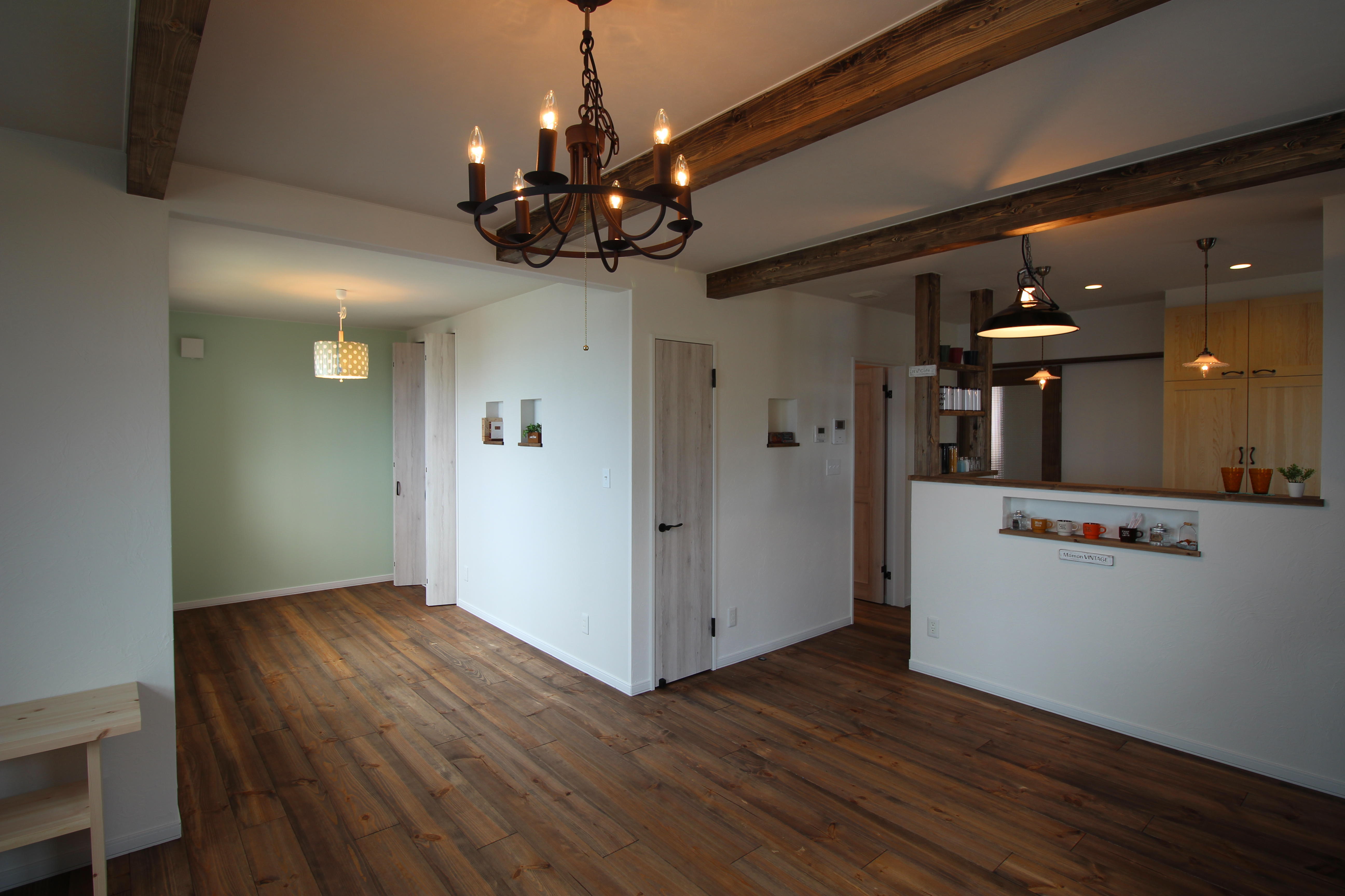 1階はご家族皆様で楽しく過ごせる空間造りをメインに考えて造りました。海を一望出来る窓を中心に素敵な空間を 演出出来たと思います。2階は可愛らしい空間造りをメインに考えました。ご希望が当社のMamanの家のテイストでしたので、無垢の木を使いまして、エイジングしたり、テイストに合った塗装や素材選びを致しました。 2世帯それぞれのご夫妻様に大変満足いただけた事が何より嬉しかったです。 素敵な2世帯住宅に生まれ変わりました!!