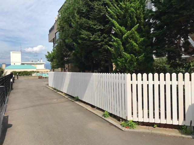 函館山に佇むピンク色の塗り壁の洋館にはモクの白いフェンスが良く似合います!!